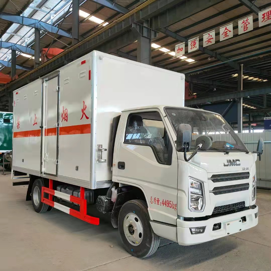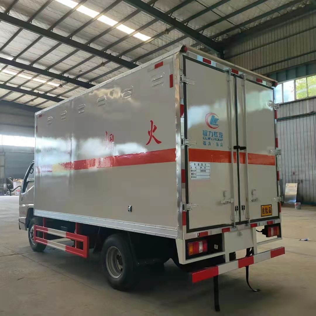 2)上裝定制要求:貨廂尺寸:4150×2050×2000(mm);整車尺寸:5995×2150×3030 (mm);白色;總質量:4495kg。側門:右側居中單開。廂體采用金屬骨架:外板采用冷軋鋼板及一次性成型的百葉窗,夾層為矩形管架焊接固定和阻燃材料填充,內飾為鋁板蒙面,有透氣孔;加裝臥環2排;底板δ3mm,底板上鋪防靜電膠皮;廂體內加裝安全防盜報警器、煙火探測報警器;其他標配:靜電帶、安全告示牌、危險品銘牌、反光標示及警告標志、滅火器、危險品頂燈、防火罩;嚴格按照國家公告尺寸、圖片等要求生產。