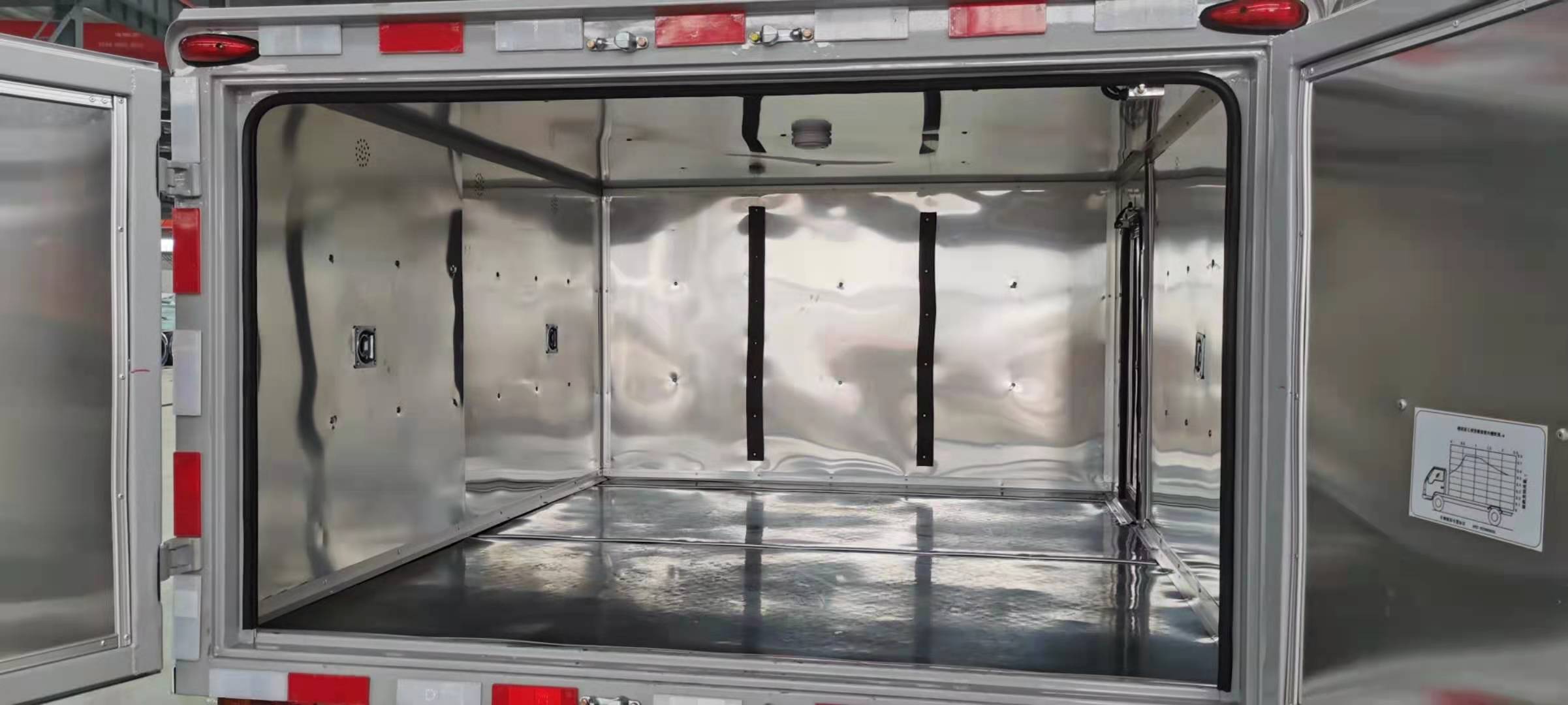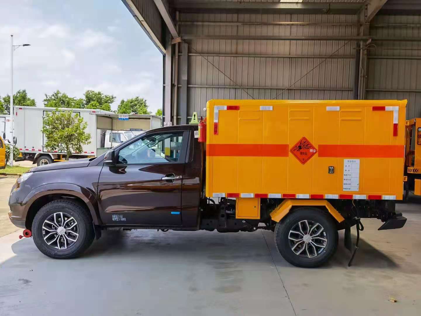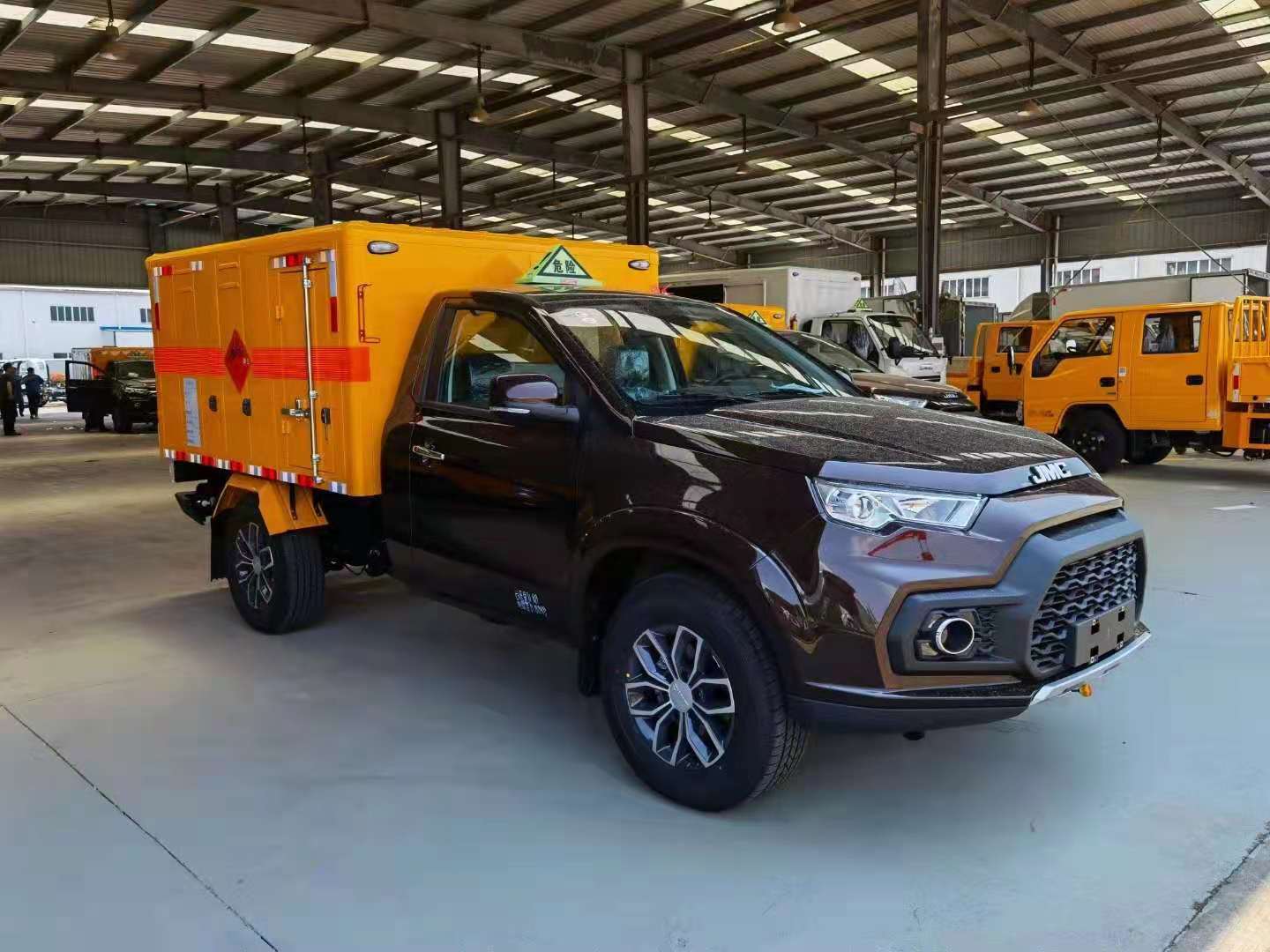 江鈴皮卡國(guó)六爆破器材運(yùn)輸車采用國(guó)六江鈴域虎四驅(qū)皮卡底盤,發(fā)動(dòng)機(jī)搭配彪馬104kw(140馬力),四驅(qū),帶電動(dòng)門窗、中控鎖、空調(diào),245/70R17真空胎。帶車道偏離預(yù)警,防碰撞預(yù)警。廂體嚴(yán)格按照公告尺寸制作。外板采用1mm厚冷軋鋼板帶百葉窗,內(nèi)飾為導(dǎo)電性能良好的鋁平板有透氣孔,矩形骨架結(jié)構(gòu)內(nèi)部填充防潮阻燃材料。廂體四周鋁合金包邊及包角,車廂底板鋪設(shè)防靜電膠皮,后部設(shè)置對(duì)開門,廂體內(nèi)部?jī)蓚?cè)安裝捆綁貨物的臥環(huán)。廂體內(nèi)部安裝煙霧報(bào)警器及防盜報(bào)警感應(yīng)器。帶菱形告示牌、安全告示牌、危險(xiǎn)品牌、拖地靜電帶。