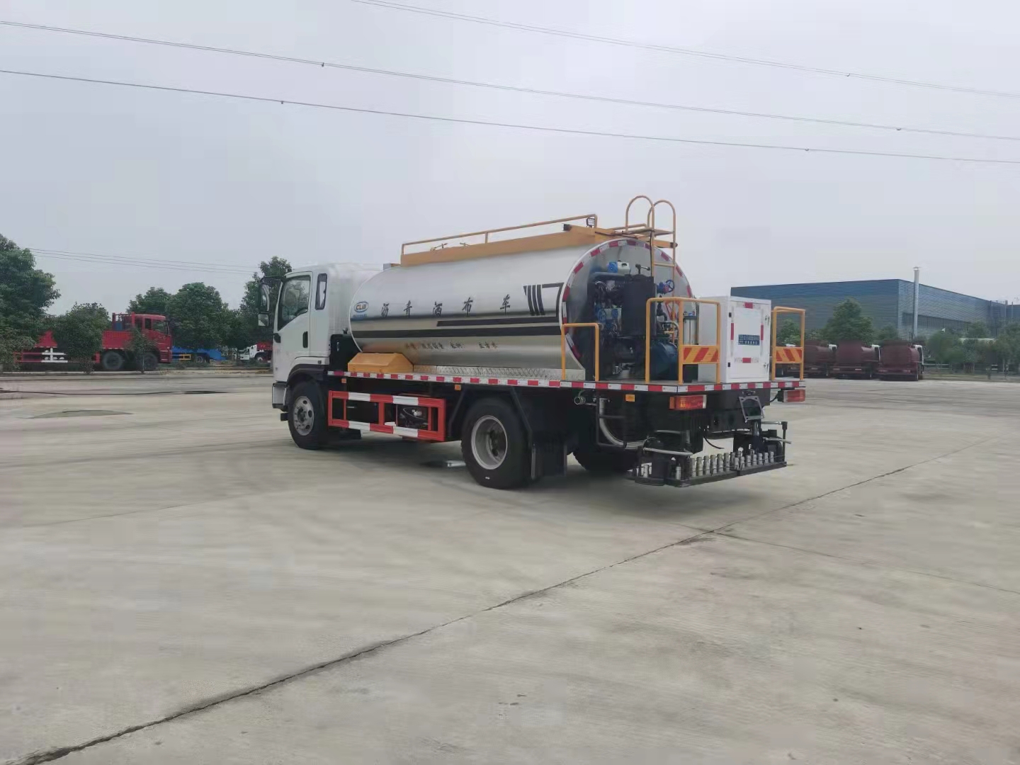 8噸陜汽軒德X9國六智能型瀝青撒布車整車型號:CL5162GLQ6LS。X9排半2120駕駛室,帶電動門窗、中控鎖;離合助力;100Ah免維護雙電瓶;、發動機D40TCIF1(云內184馬力)、法士特8擋(帶取力器)、車架861x232/6+4雙層、145/3.2T前橋、后橋145/8T、130L鐵、輪胎9.00R20/16PR。