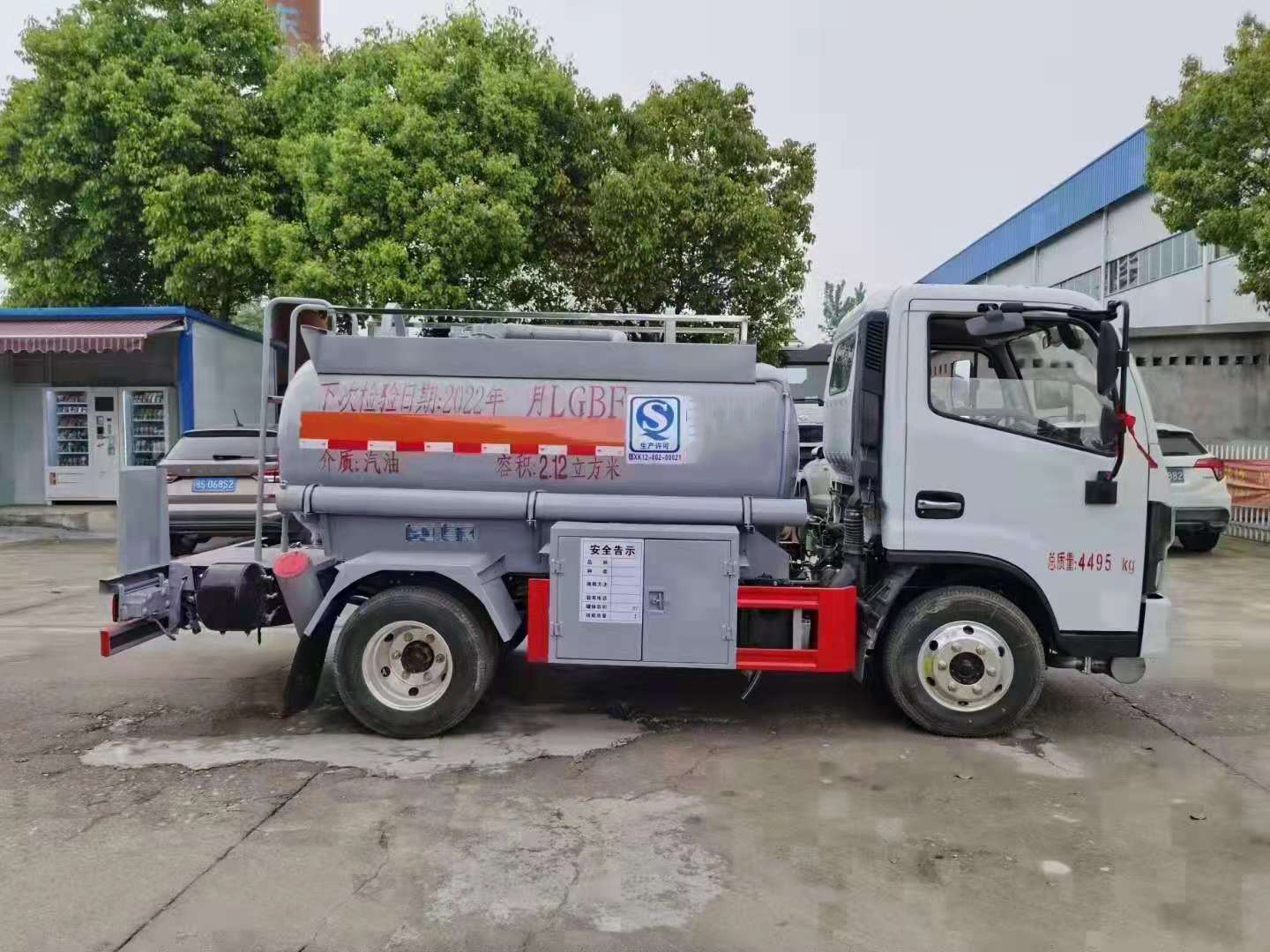 東風多利卡藍牌加油車嚴格按照公告尺寸制作罐體2.12立方、罐體厚度大于等于4.2mm、歐標一套:(歐標罐口 、油汽回收、防溢流探桿、靜電插座、下裝油口、海底閥)。折疊護欄、專用油泵(自吸自排)、大流量加油機及15米自動回位卷盤,兩根罐體等長輸油管、兩個滅火器、一個防火帽。其余標配油漆:銀灰、貼反光條、反光帶、安全告示、貼 “易燃” 標。整車具備燃油公告,我方提供車輛上戶所需的國六底盤證、整車合格證、罐檢報告、探傷檢測報告、海底閥證明。