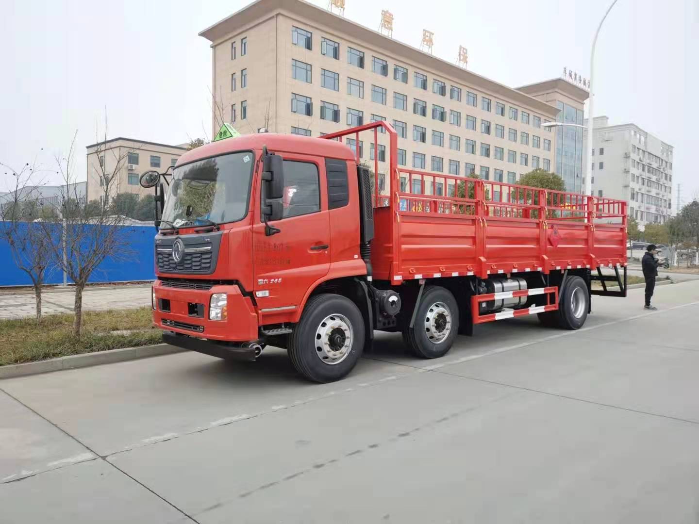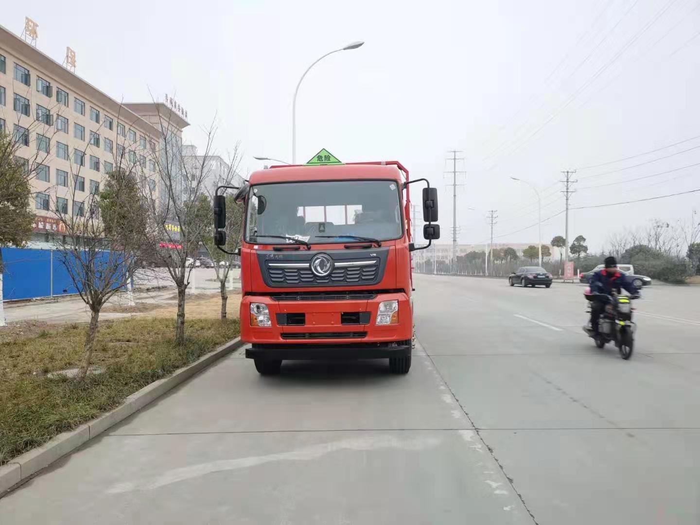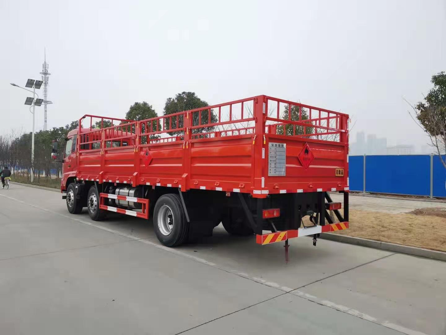東風(fēng)天錦6*2三軸氣瓶運輸車底板為鉚接結(jié)構(gòu),底板為5mm花紋板,上鋪靜電膠皮和加裝臥環(huán),選裝公告高欄結(jié)構(gòu)或平板車廂結(jié)構(gòu)(高欄可拆卸),車身附件靜電接地帶、滅火器、防火罩、危險品三角燈、橙色反光帶、反光板、菱形標(biāo)志牌、危險品牌、安全告示齊全。
