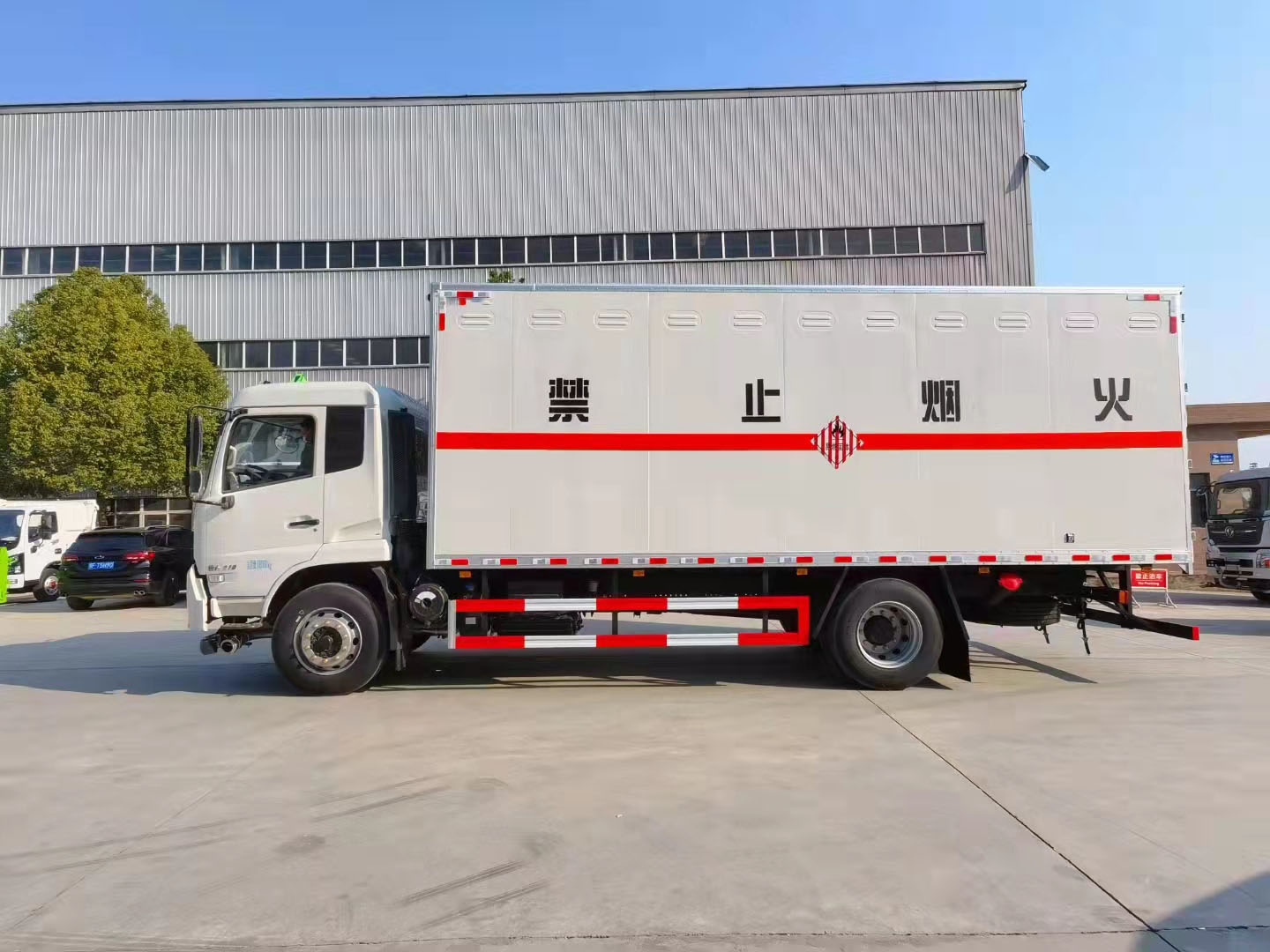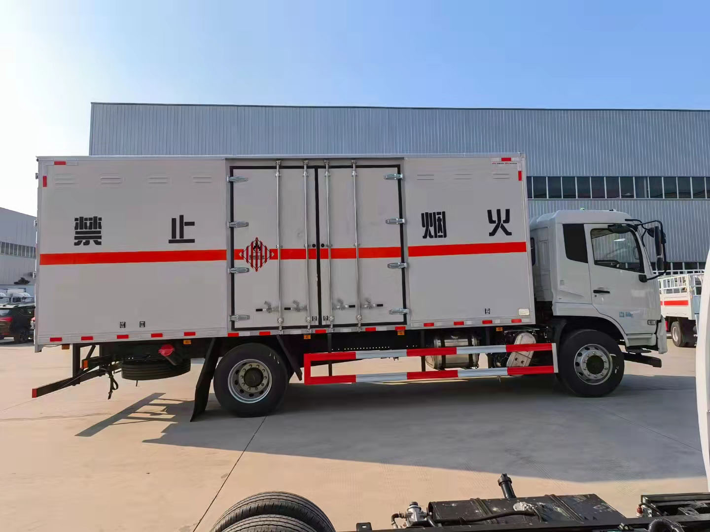 額載10噸廂長6.85米東風(fēng)天錦易燃固體廂式運輸車雙面夾層結(jié)構(gòu),外板采用免漆板有一次性沖壓成型的百葉窗,內(nèi)飾為導(dǎo)電性能良好的鋁板有透氣孔,復(fù)合加鉚合工藝,內(nèi)襯為矩形管骨架牢靠穩(wěn)定,骨架內(nèi)部填充為透氣防潮阻燃材料。廂體外部四周鋁合金型材包邊。鋪靜電膠皮,隨車配有靜電帶,滅火器,危險品三角頂燈。整車國標(biāo)反光標(biāo)示及警告標(biāo)志。尾部可選裝液壓升降尾板,卸貨方便。