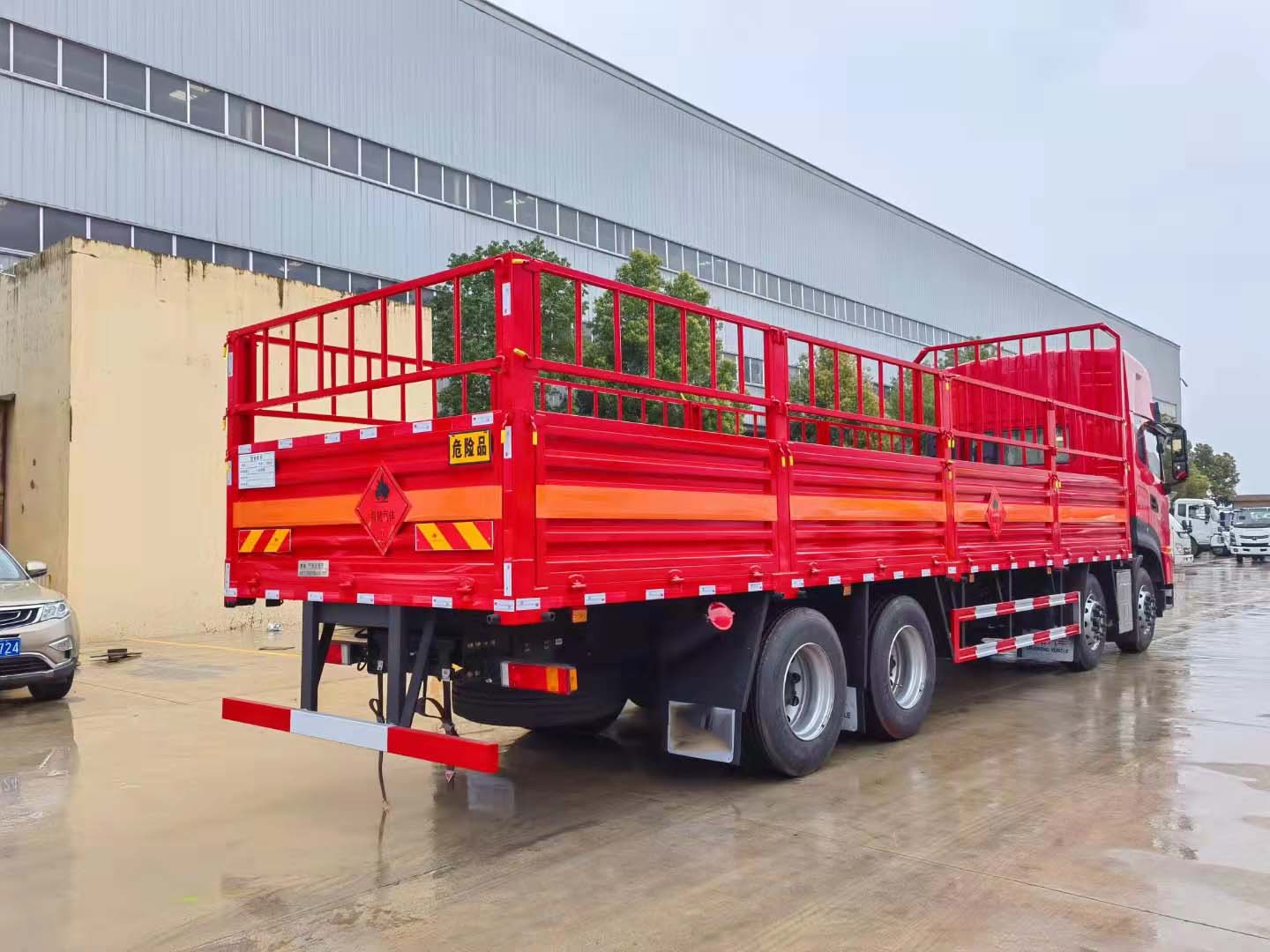 東風天龍前四后八KL國六氣瓶車采用的是可拆卸式 高欄,整車采用紅色更亮麗耀眼,貨箱尺寸可達9米4,帶液壓尾板,整車不超重,重點是該車匹配的是高頂雙臥駕駛室,危險品標配兩人,乘坐休息兩不誤。該車支持定制,可分期付款,歡迎各新老客戶來電咨詢訂購!