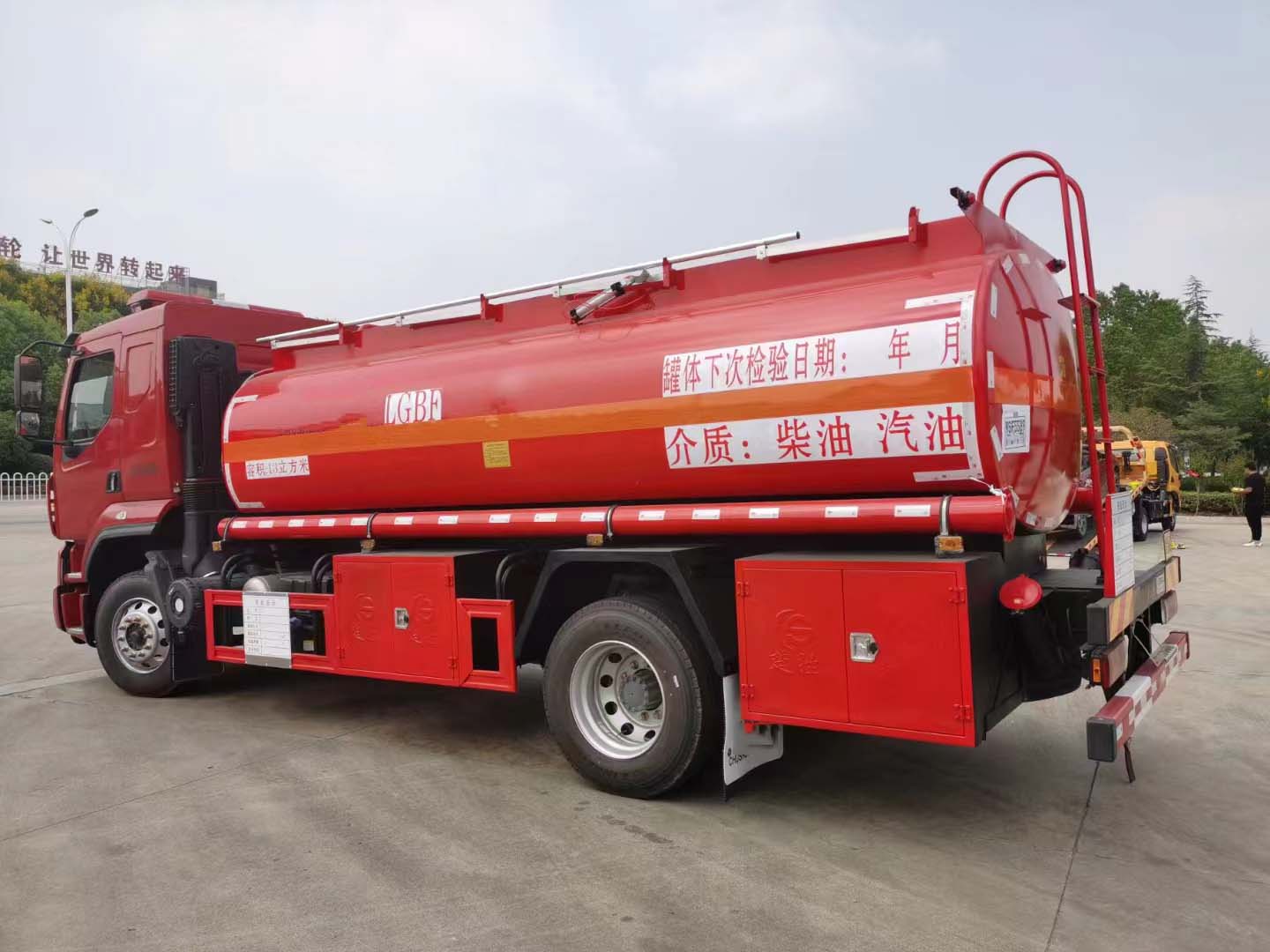 柳汽乘龍國(guó)六10噸加油車采用的是柳汽專用危險(xiǎn)品車底盤,H5駕駛室,8檔變速箱(8JS95E-C),3.6T盤式前橋,后橋9噸,,采用的是350L(鋁)油箱。為了讓車輛更安全,都采用的是防爆胎裝載,275/80R22.5。整車采用的是機(jī)械全浮式駕駛室懸置、車身電動(dòng)翻轉(zhuǎn)、夾層玻璃、電動(dòng)玻璃升降器、針織帶調(diào)高氣囊司機(jī)座椅、電磁離合風(fēng)扇、全新內(nèi)飾、LCD液晶儀表、MP3+收音機(jī)、自動(dòng)空調(diào)、定速巡航系統(tǒng)、國(guó)產(chǎn)閥、ABS、車載終端(行駛記錄儀+兼容北斗GPS)、外部遮陽罩、鋁合金儲(chǔ)氣筒、中控鎖、自動(dòng)調(diào)整臂、多態(tài)開關(guān)、真皮多功能方向盤、右轉(zhuǎn)提示音響、前置排氣管、前輪防爆胎應(yīng)急安全裝置、盤式前橋、排氣火花熄滅器、危險(xiǎn)品運(yùn)輸頂燈、ECU限速裝置(限速80km/h)、駕駛室電源總開關(guān)、導(dǎo)靜電橡膠拖地帶、ESC防側(cè)翻系統(tǒng)、EBS、TPMS、LDWS、FCW、T-BOX。
