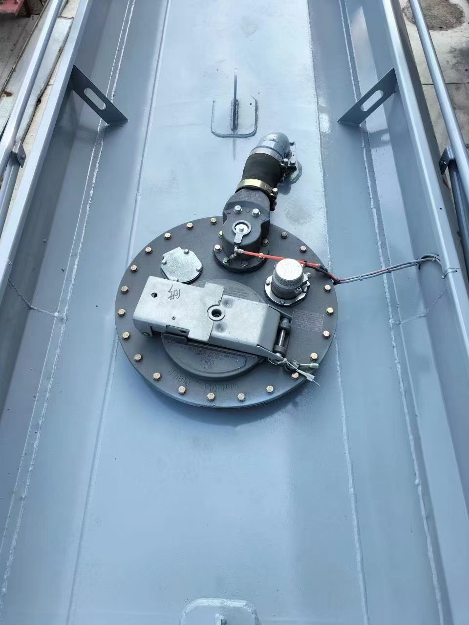 東風福瑞卡國六8.5方加油車采用的是東風福瑞卡國六公告查詢代碼:HTT5120GJYD6,該車在同款車型中容積大,實際容積可達8.6方,采用的是東風福瑞卡單排駕駛室,專為爬坡設計采用的是法士特8檔變速箱,同款大馬力170馬力,軸距3800mm。罐體采用的是4.2mm,封頭4.75mm厚Q235,鋁合金歐標套(鋁合金海底閥/580鋁合金歐標人孔蓋/泄油閥/油氣回收閥/),60-80油泵,泵進泵出(四位三通閥/四位三通濾網/DN65鋁合金球閥),賽爾斯60升加油機帶1寸15米卷盤。