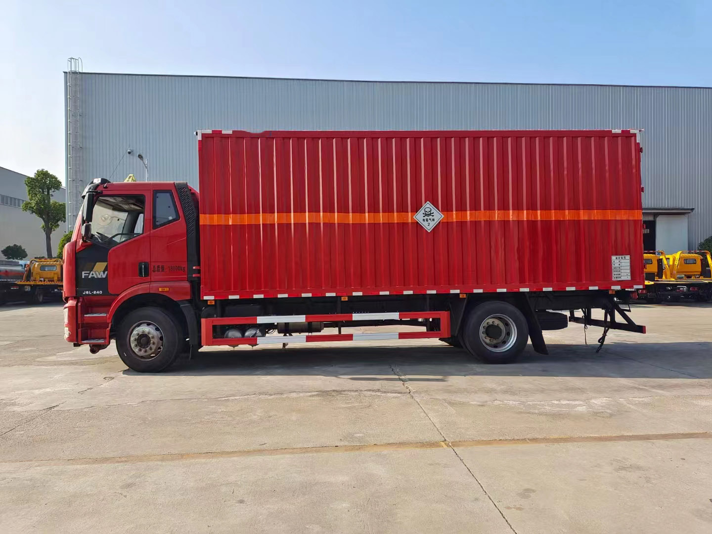 解放J6L國六毒性氣體廂式運輸車采用的是解放危險品專用底盤,懸浮半高頂駕駛室,6缸240馬力發動機,帶中控鎖、電動液晶儀表、電動玻璃升降、電動后視鏡(智能化設計,讓您使用)。該車帶側圍網兜、后圍窗簾導軌、全景窗簾導軌、頭頂放物盒、在市場上非常難得是該車為駕駛員座椅為空氣減振座椅、中間座椅。