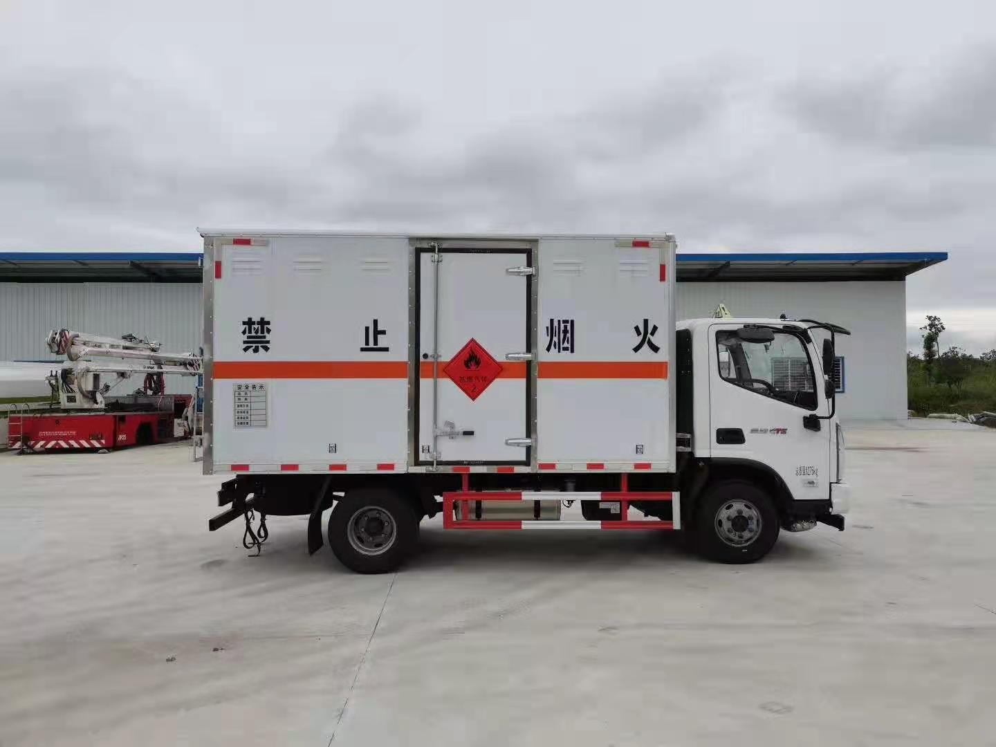 福田奧鈴7噸國六危化品車廂體安裝防飛濺;前后示廓燈;駕駛室頂安裝危險品警示燈;底盤尾部安裝導(dǎo)靜電拖帶;兩側(cè)邊板及后板橙色反光帶、危險品標(biāo)志牌,尾部粘貼危險品標(biāo)志牌和警告標(biāo)識牌;車廂前板外部安裝滅火器2只;側(cè)防護、后防護符合國家要求;車身貼紅白反光貼,側(cè)標(biāo)志燈符合國家要求。