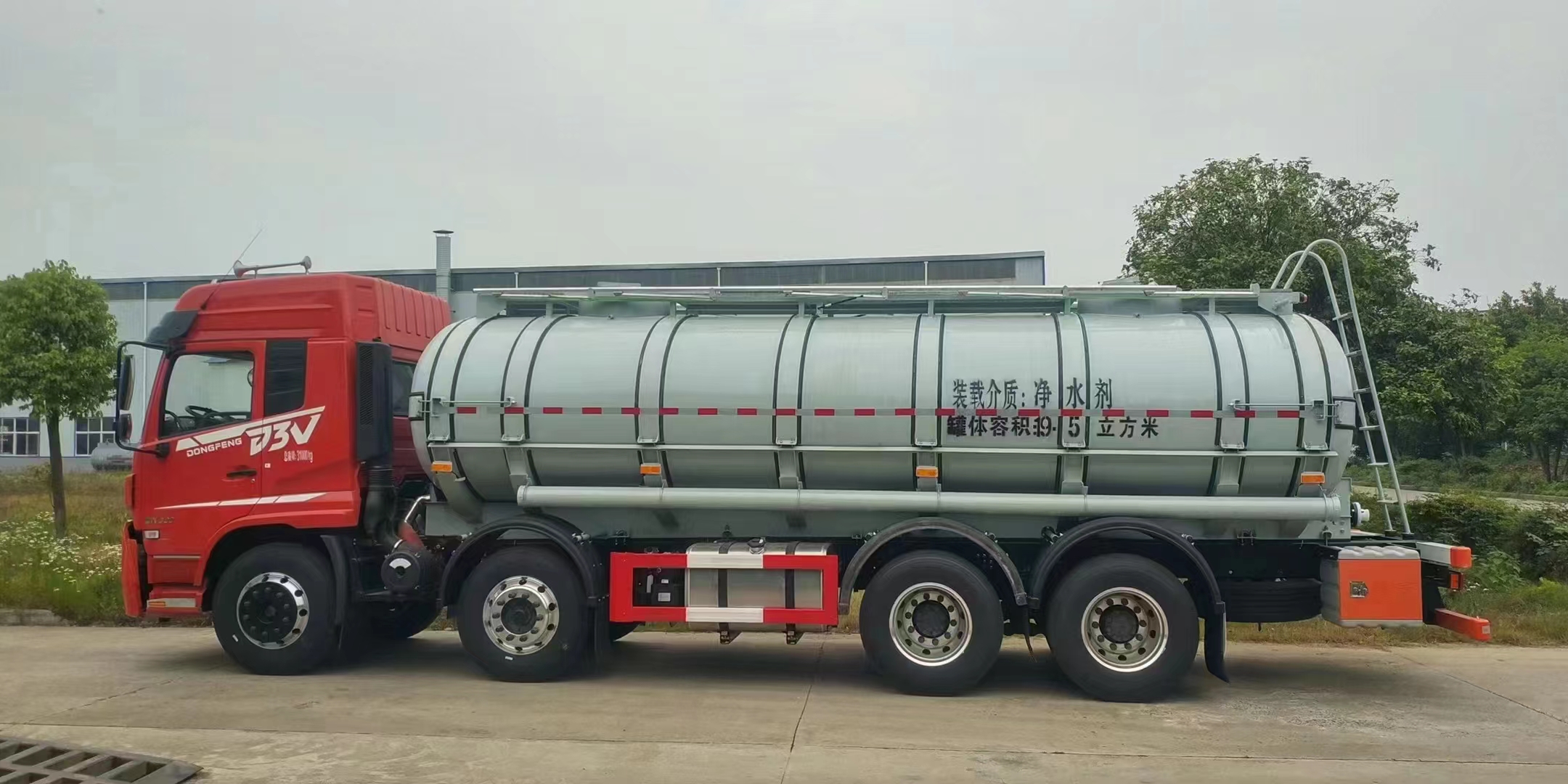 運輸凈水劑、聚合氯化鋁,聚合硫酸鐵等介質均屬于普通液體,該類車型在特定的市場上使用,被市場的認可度也很高。為了讓車輛自重輕,很多客戶選擇的是塑料罐的供液車。程力專汽為您推薦的是東風前四后八塑料罐供液車,以下是詳細配置介紹:
