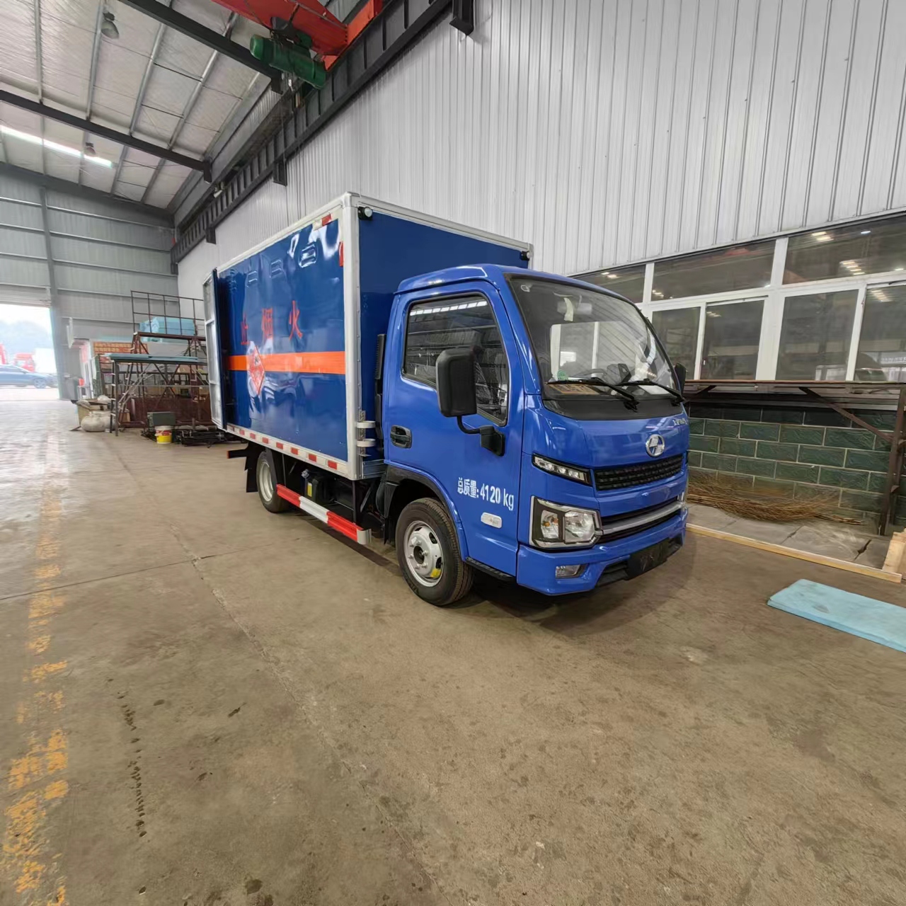 躍進S80易燃氣體廂式運輸車采用的是專用危險品車底盤,全柴95馬力發動機,針對液化氣瓶氧氣瓶運輸屬于重載類,該車配置有專用柴油車輛。此次定制的烈焰藍,顏色新穎奪目,給人眼前一亮的感覺。為了方便車輛使用,該車采用的是貨箱3米3廂長,裝載容積可達1.7噸,配送車輛更方便,箱體內可設置帶槽鋼的卡槽,或者活動式的卡槽。還可以選擇臥環固定。每一款樣式都不一樣,根據您固定的二類危險品裝載樣式進行固定。