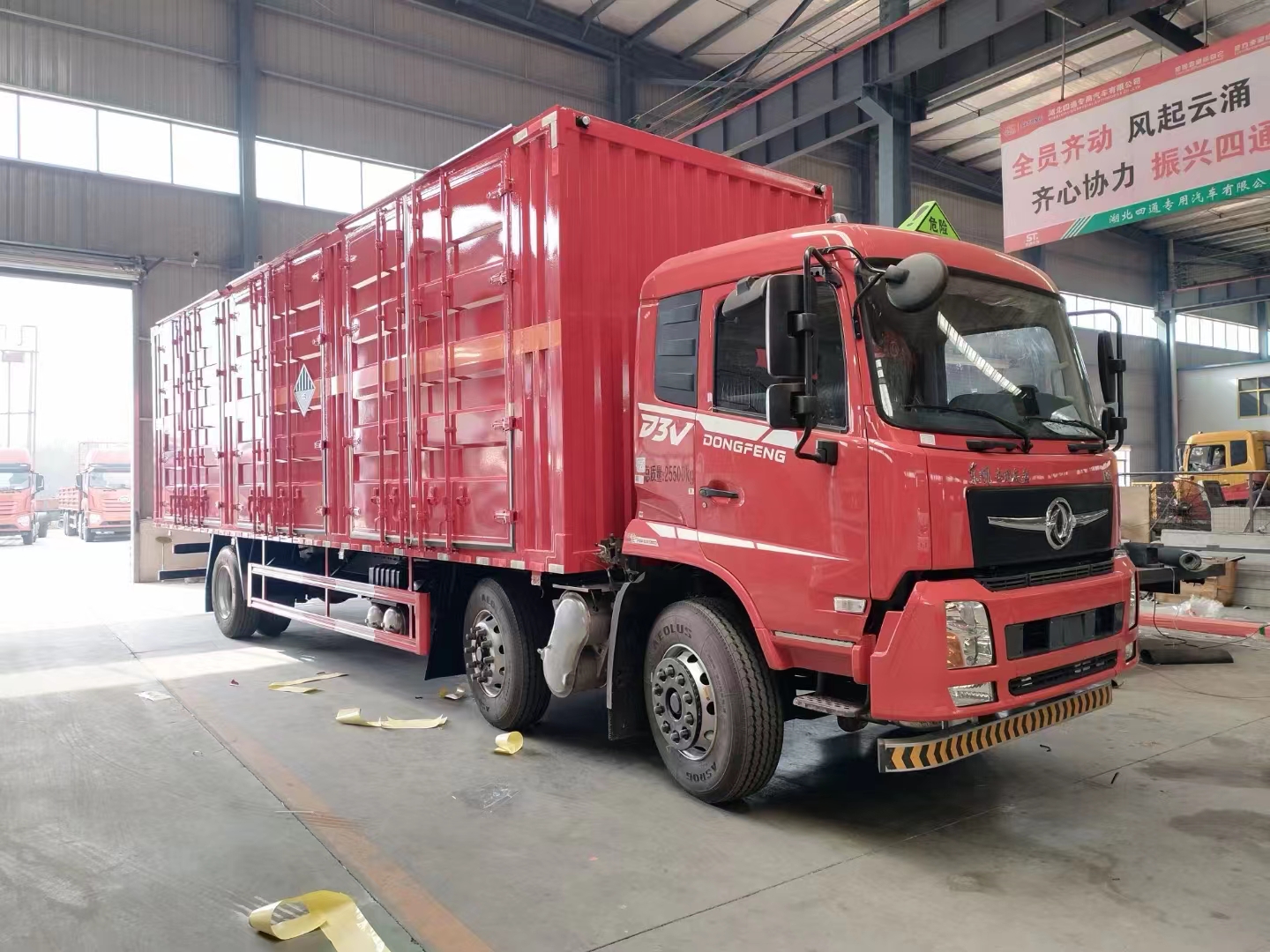 東風D3V國六9米6雜項危險品車采用的是專用危化品底盤,玉柴245馬力發動機,帶中控鎖、電動門窗、廂體外板采用瓦楞板箱體,有靜電帶、滅火器、防火罩。整車國標反光標示及警告標志。箱體右側帶兩個雙開側門。帶靜電接地帶、危險品三角燈、防火罩。帶整車合格證、發票、隨車工具、服務手冊、保修手冊。貨箱尺寸:9600*2450*2400mm,額載18噸,帶三個對開門,尾部可加裝液壓尾板。