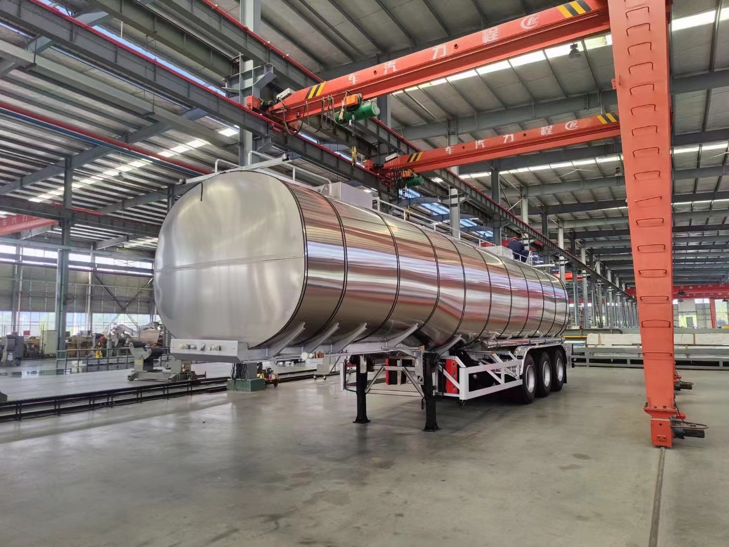 46方鋁合金普通液體運輸半掛車上裝內罐容積:46方,采用5182鋁合金材質制作,罐體5mm,隔板:5mm,封頭6mm,外保溫層厚度50mm,外包鏡面不銹鋼,帶六爪快開罐口(或者歐標罐口),帶后尾部左右自流,選裝海底閥,選裝加熱管,底架配置:3軸13噸廣東富華橋,兩軸帶ABS,12條12.00R22.5真空胎配普通鋼圈,16噸剎車片,50牽引銷,28噸單動支腿,其他按廠標配。