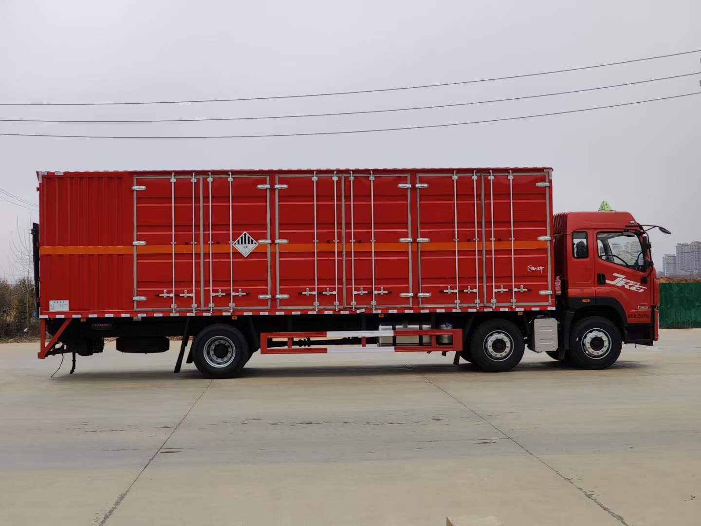 解放四軸國六帶左右開門危險品車箱體采用整體上裝靜電噴塑高溫烤漆工藝。錫柴260馬力,法斯特8擋,箱體尺寸9600*2450*2600mm。上裝箱體采用的是9.6米瓦楞車廂,廂體為單層瓦楞結(jié)構(gòu),邊板1.2底板4毫米,標(biāo)配一個對開門,廂體底部可選裝5毫米帶2層子午線橡膠板,車輛副梁配備導(dǎo)靜電帶,廂體內(nèi)襯壁可選裝固定貨物的臥環(huán),卡槽、槽鋼、鋼筋、方管,廂體內(nèi)頂部安裝煙感報警器,廂體安裝防盜報警器。箱體采用整體上裝靜電噴塑高溫烤漆工藝。部分公告樣車為普通油漆。