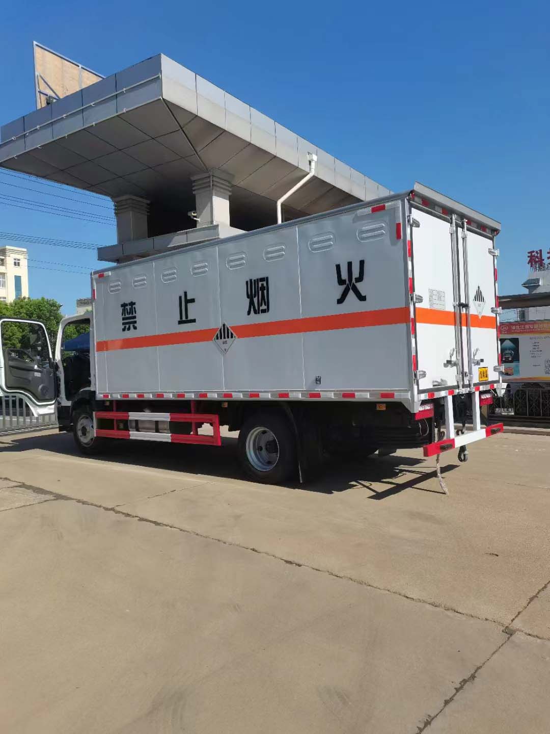 解放5米5雜項危險品車采用的是J6F駕駛室,也可選擇虎V駕駛室,根據發動機要求不一樣,選擇的車型不盡相同。該車客戶定制的是排半駕駛室,或者單排,均可多選。一類車型多種選擇。尤其拉煙花運輸,此時都少不了大容積大箱體車型。客戶選擇該款車型,主要是寬體駕駛室,3人座,駕駛室顏色可多選。箱體采用廂式欄板車結構,外厚度為1.1毫米厚度武鋼冷軋鋼板(或沖壓成瓦楞板,以公告為準),內加強“幾”字型加強梁,車體底板加強處理并做防靜電處理。車體的左側、右側,和后欄板栓鉤結構,可向下打開,方便上下貨物,車體為空曠式車型,大大減少了運輸物品因為狹窄空和強烈碰撞產生氣瓶爆炸的危險性,箱體外觀涂裝白色油漆,在欄板的中間位置粘貼橙色的危化車標帶,并在車體的左、右、后部粘貼“易燃氣體”或“不燃氣體”標識。駕駛室內部配備兩只滅火器,后保險杠處安裝防追尾事故的緩沖固定塊。此款車輛屬于國家規定的危險品二類倉欄式運輸車。