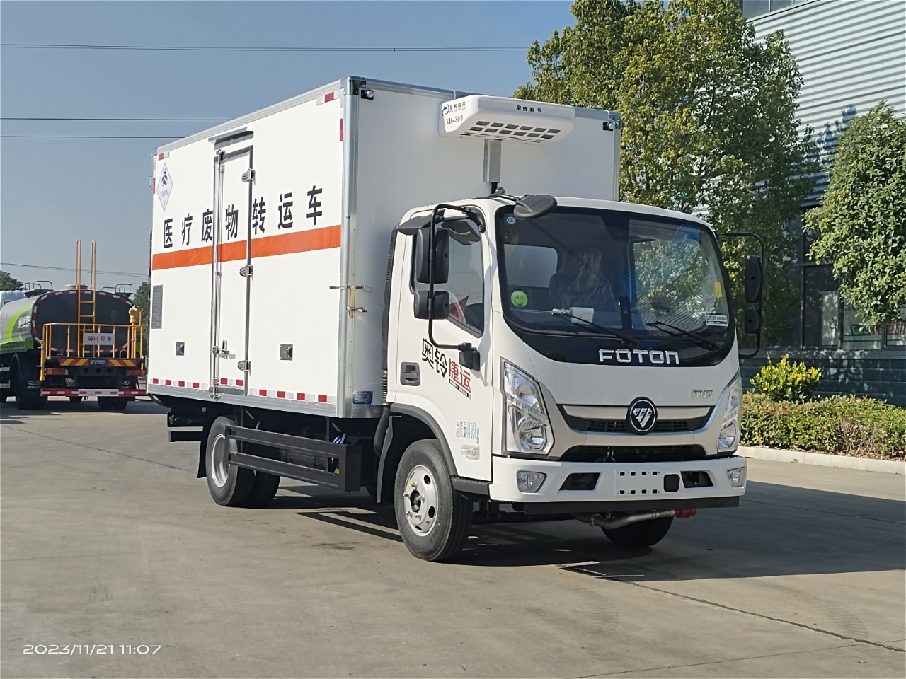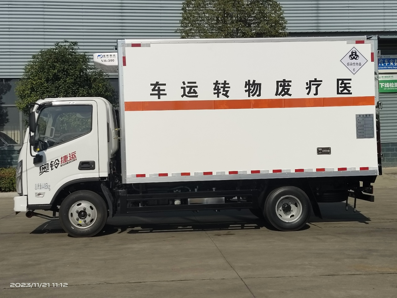 福田奧鈴國(guó)六醫(yī)療廢物轉(zhuǎn)運(yùn)車選用的是福田奧鈴危險(xiǎn)品專用底盤,國(guó)六排放標(biāo)準(zhǔn),廂體尺寸:4060*2100*2100mm,可選云內(nèi)150馬力發(fā)動(dòng)機(jī)或康明斯131馬力發(fā)動(dòng)機(jī),帶5檔變速箱,7.00鋼絲胎,帶空調(diào),方向助力,中控鎖,電動(dòng)車窗,排氣管前置,ABS限速,車道偏離預(yù)警,前碰撞預(yù)警。根據(jù)醫(yī)療廢物轉(zhuǎn)運(yùn)車要求,該車外板采用玻璃鋼,中間填充隔熱阻燃材料,廂內(nèi)全部為不銹鋼內(nèi)板,尾部帶不銹鋼門內(nèi)門(選裝側(cè)門),帶-5度冷藏機(jī)組。上裝工具包括靜電帶,滅火器,防火帽,三角頂燈。國(guó)標(biāo)反光標(biāo)示及警告標(biāo)志。匹配有不銹鋼五金件,紫外線殺毒燈,噴霧消毒壺和噴淋裝置。