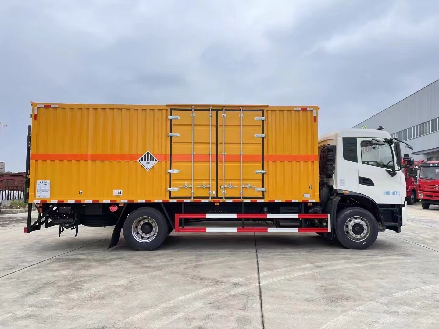 東風天錦外瓦楞板內不銹鋼板樣式危險品車選用的是貨廂尺寸6600*2400*2400,額載10噸,康明斯210馬力,帶2噸液壓尾板。廂體內部特殊定制,不銹鋼材質。整車型號:CSC5181XZWD6,箱體選用的是外冷軋板折彎而成瓦楞板,內部為了更好地耐用耐腐蝕性,選用的是整體不銹鋼板,在扎實耐用的情況滿足更好地使用。