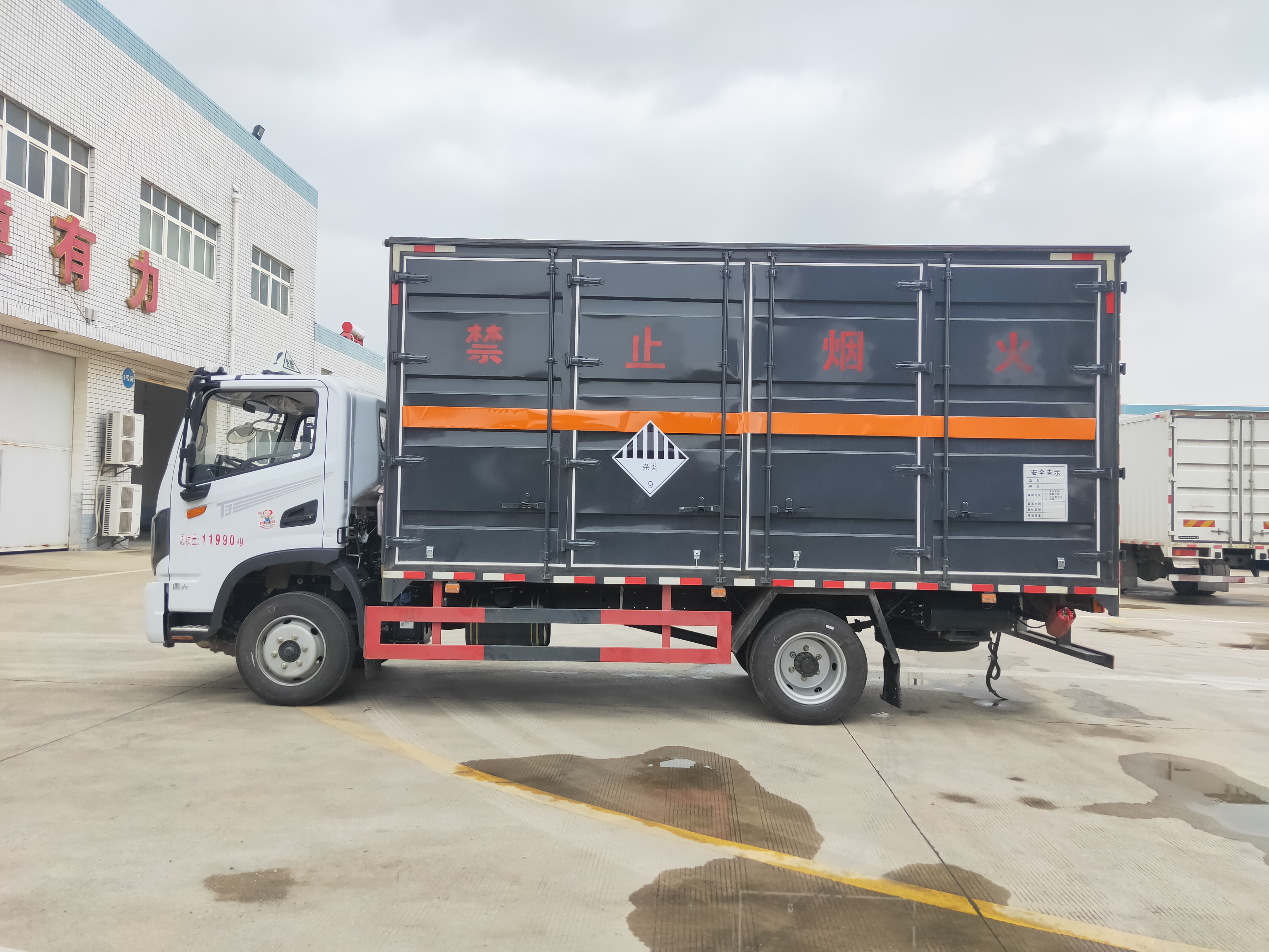 東風華神國六排半爆破器材運輸車選用的是危化品專用底盤,可選玉柴165馬力和云內170馬力發動機,8.25R20輪胎(無論是山地還是平路,都可以輕松駕馭),匹配有中控鎖、電動門窗、原廠空調。箱體采用的是阻燃防爆箱體,可定制一個雙開側門、單開側門或雙開雙側門。多種形式可開啟。重點是貨箱尺寸可定制5米5、5米2及4米8,根據您的運輸需求可以多選。
