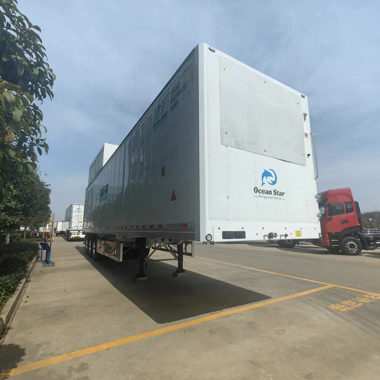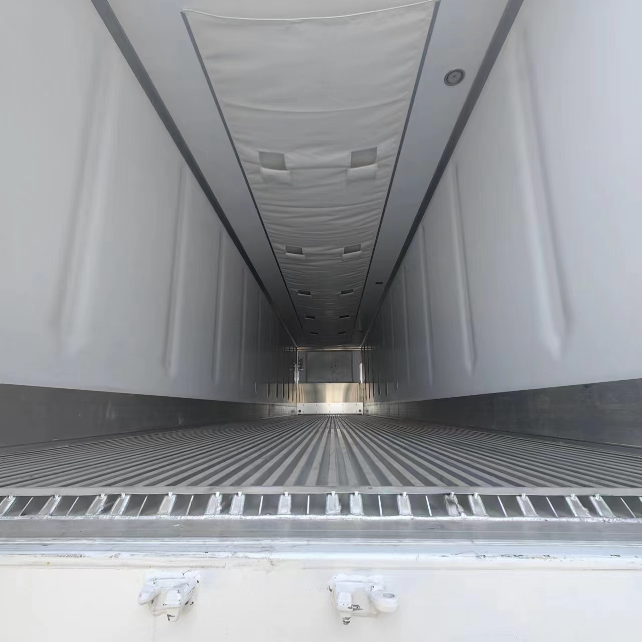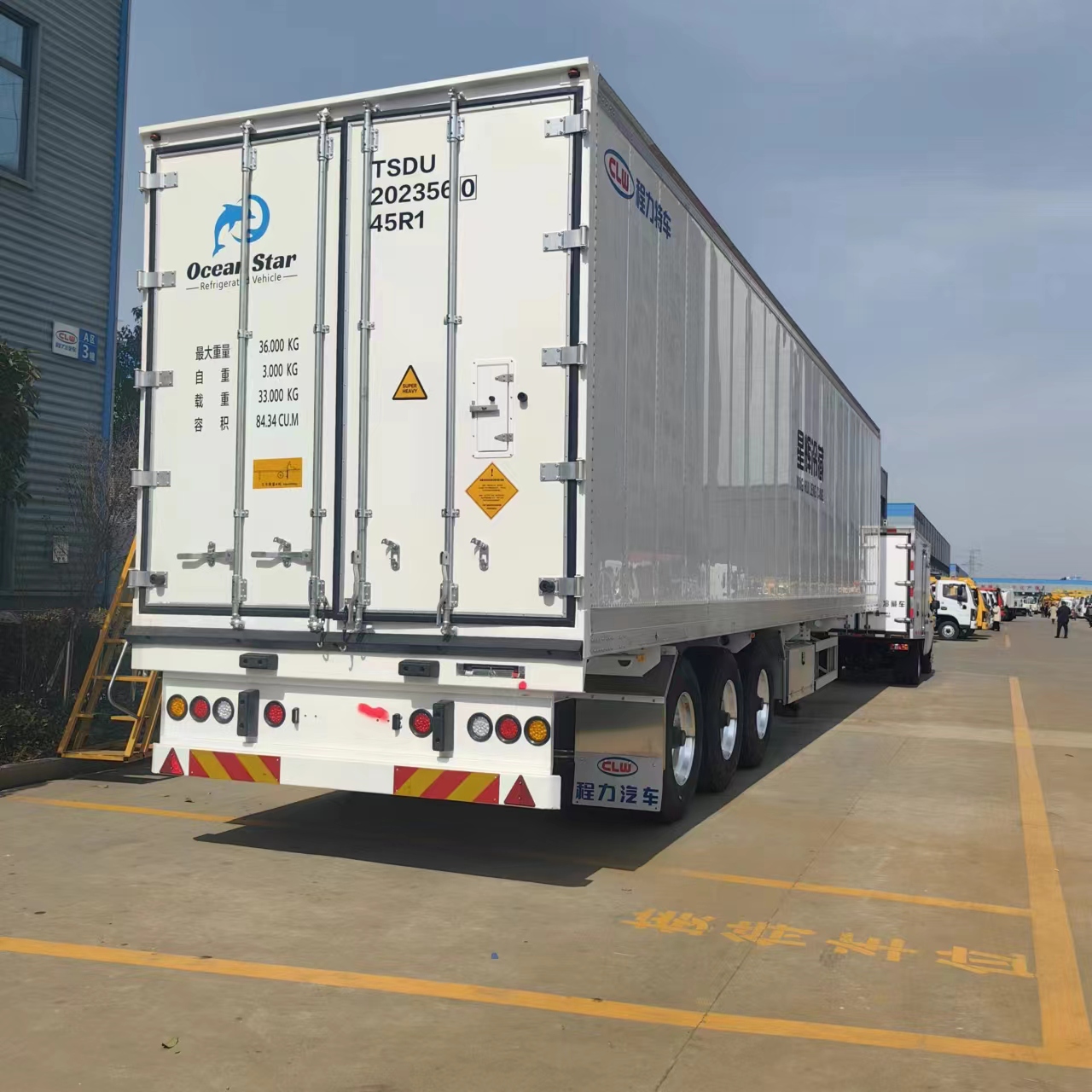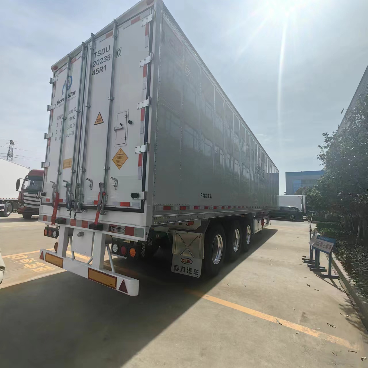 半掛出口冷藏車選用的是富華品牌的ABS,行走部分牽引銷可選裝90和50,成山12R22.5輪胎,采用的是輕量化鋼圈,帶緊急制動閥,配備鋁合金鋼圈,貨箱尺寸:12970*2440*2450mm,該車箱體采用的是外全鋁蒙皮,內熱縮板,帶聚氨酯發(fā)泡工藝,左右側板8公分厚,底板12公分厚,底板加厚通風槽,廂體內部頂板加裝通風布,前后通風器,四個頂燈,冷機護板,單側門,左右兩側30公分護板(圍裙),兩個排水孔,后門上車爬梯,大包邊,后門雙鎖桿,不銹鋼門框其他按半掛標準。