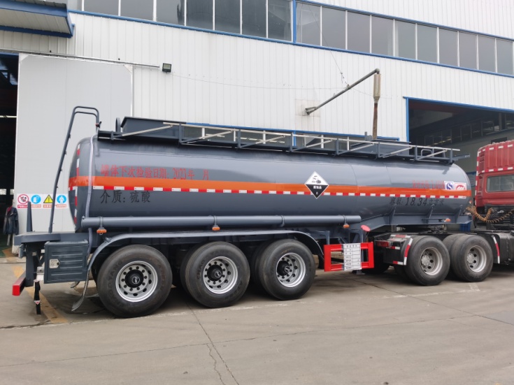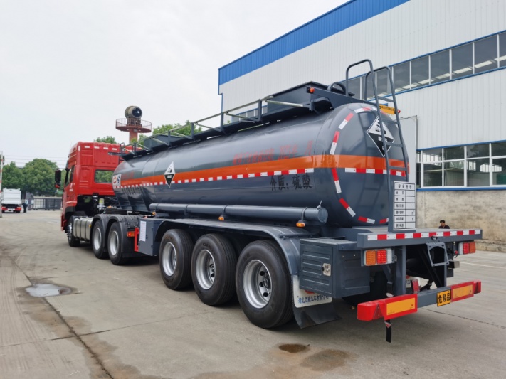 拉硫酸專(zhuān)用腐蝕品半掛車(chē)顏色可以多選,可選灰色防腐漆或者銀色等多種顏色,該車(chē)按照標(biāo)配貼反光條,貼反光帶,安全告示。介質(zhì):硫酸。想要拉硫酸不超重,又能滿足公告的,這一款車(chē)更合適,讓您用車(chē)更無(wú)憂!
