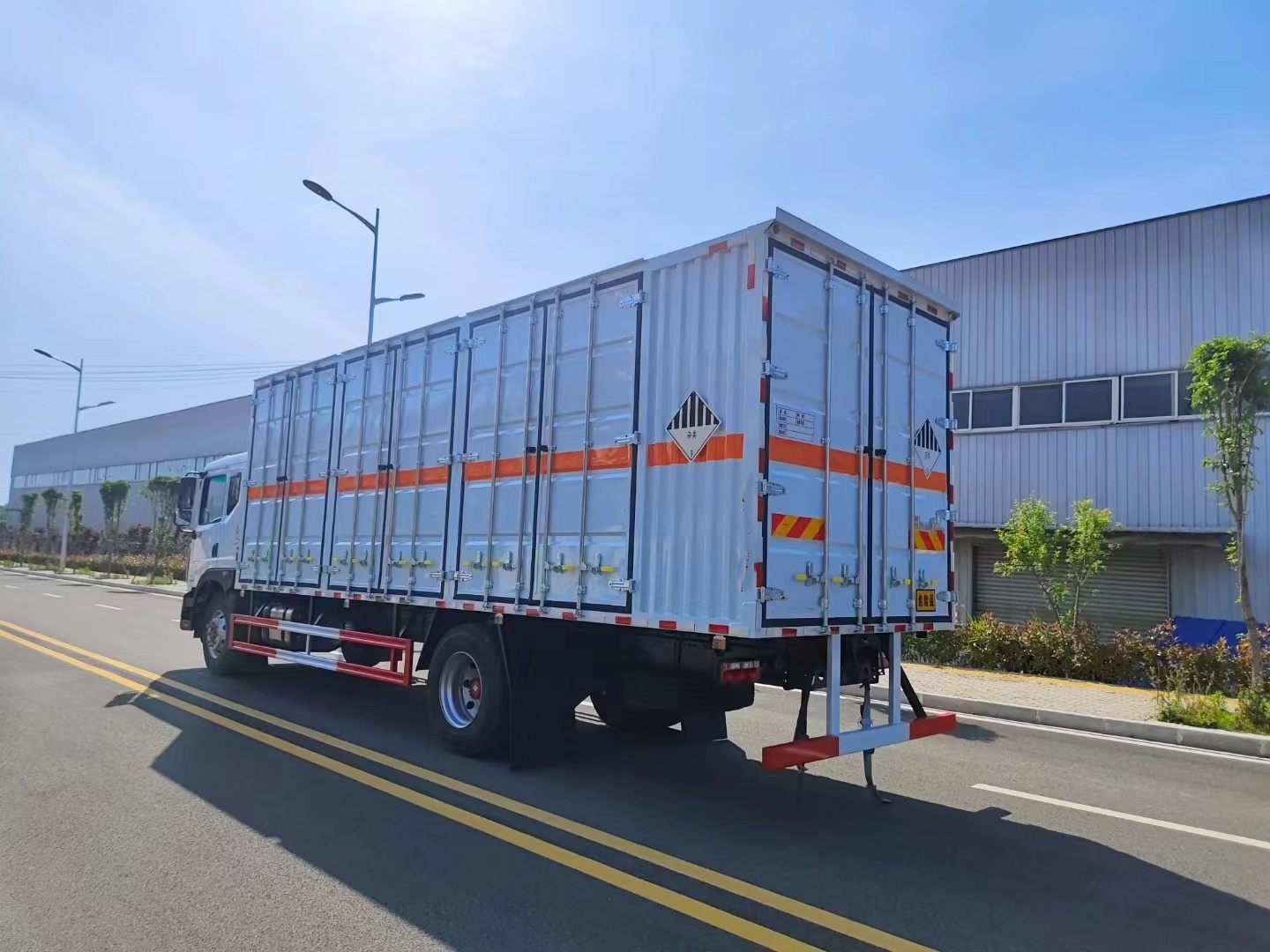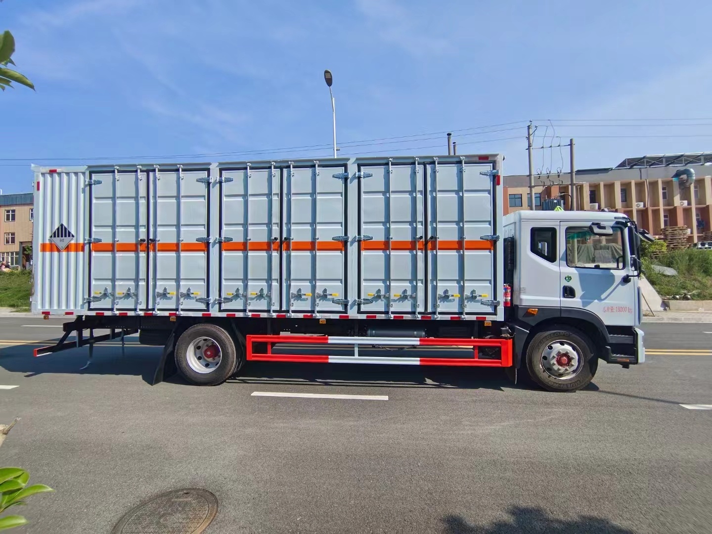 東風(fēng)D9國六帶左右開門雜項危險品車裝載噸位可達10噸,尾部可加裝液壓尾板,整車不超重,該車支持定制,可分期付款。