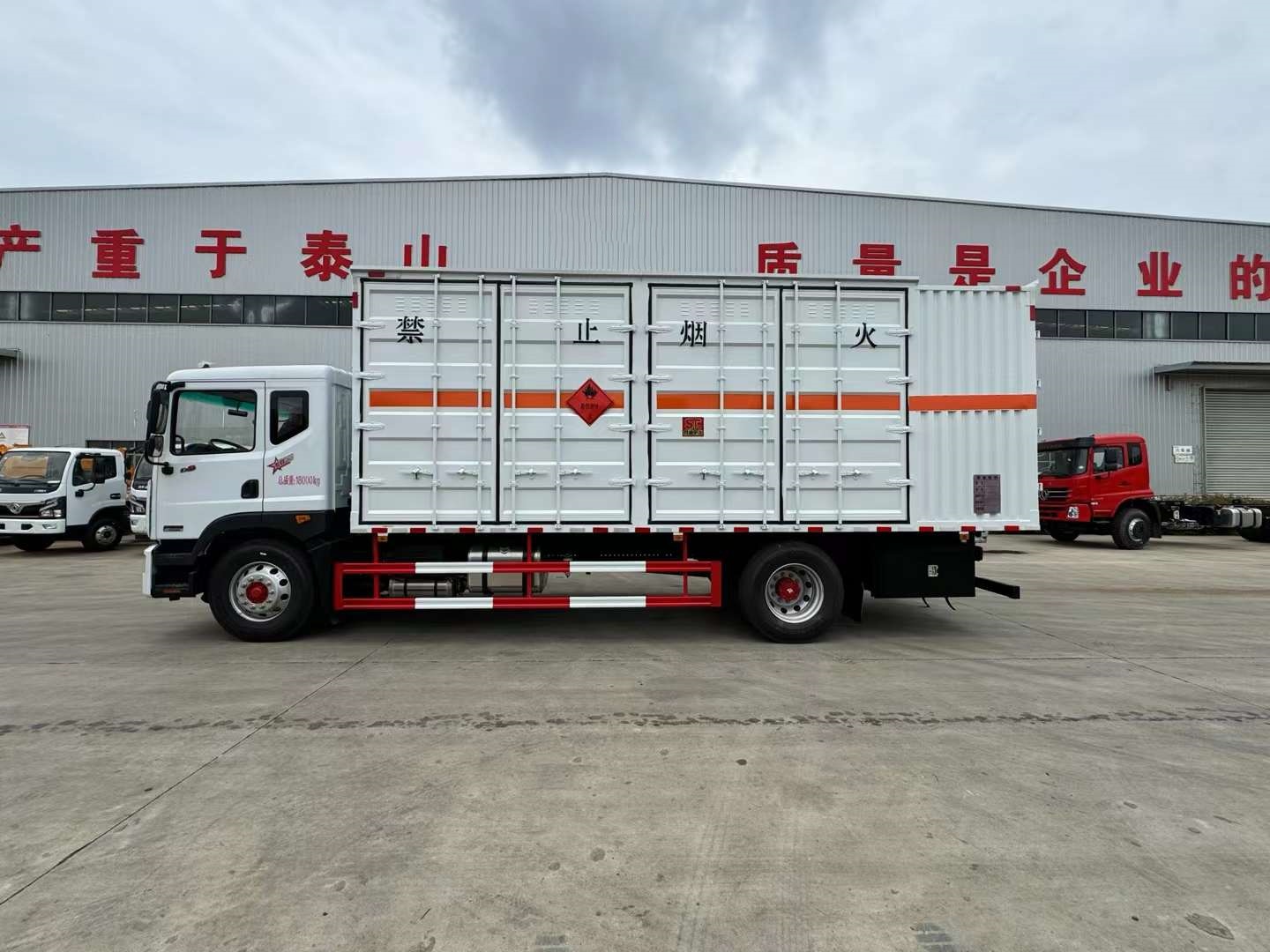 東風D9國六帶左右開門危險品廂式運輸車,可出2類氣體,2.3類毒性氣體,3類易燃液體,8類腐蝕品,9類雜項危廢,廂體尺寸:6800/7700*2450*2400mm,額定載質量:9995kg/10655kg,選裝4缸康明斯220馬力發動機和6缸康明斯230馬力發動機,箱體選用的是冷軋板折彎而成瓦楞板危險品車,該車帶左右開門,烤漆板車輛外觀耐腐蝕。尾部可加裝液壓尾板。貨箱尺寸還可以定制8米貨箱,根據運輸要求不同,箱體可選擇多種形式。
