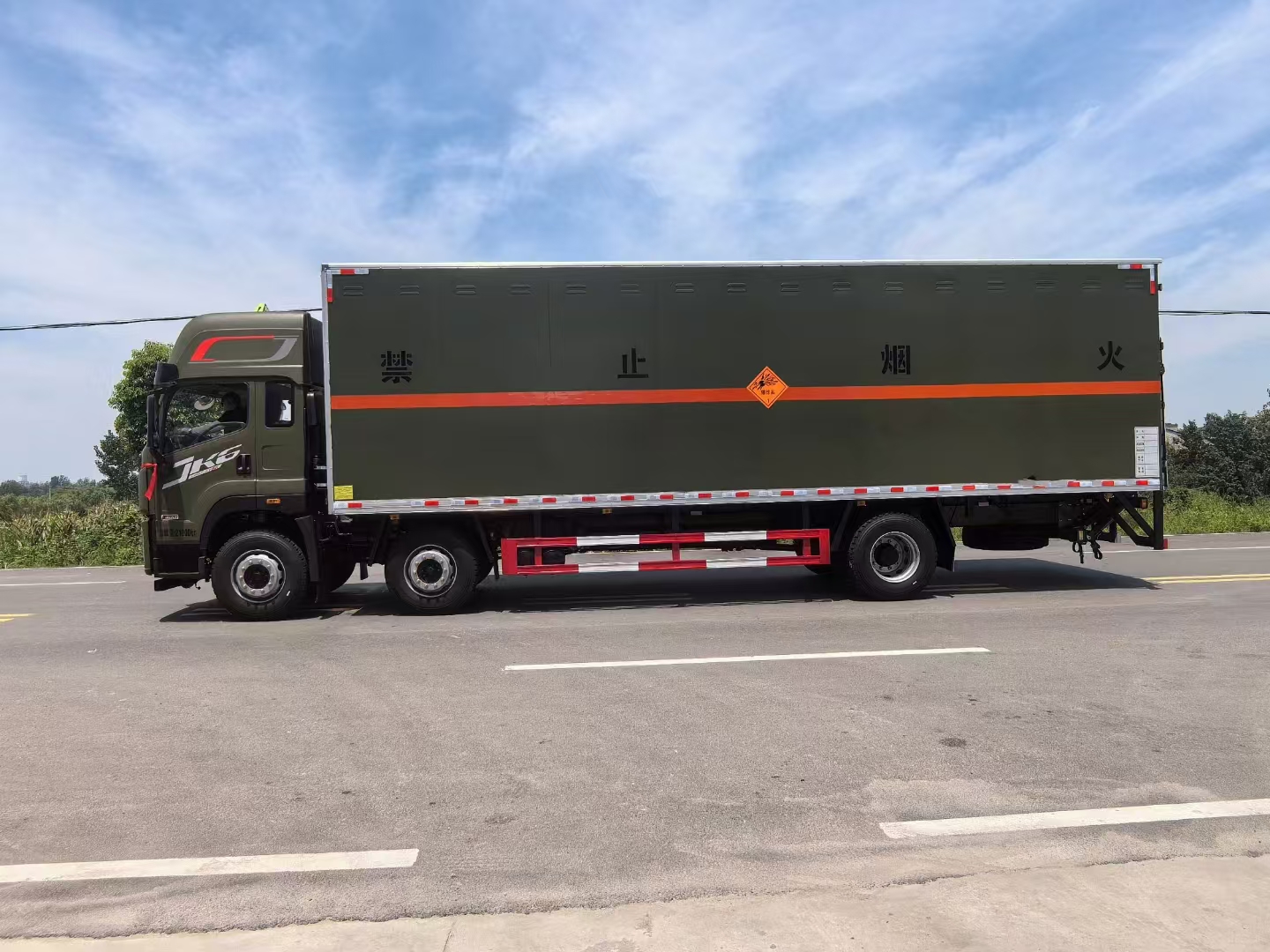解放JK6三軸國六玉柴300馬力爆破運輸車選用的是危化品專用底盤,玉柴300馬力發動機,陜齒沈8檔變速箱,公告型號:QYY5120XQYCA6,箱內尺寸:9600*2450*2600mm,額載質量:9995kg,定制的是JK6高頂全浮駕駛室(雙臥鋪/空調/電動門窗),選用的是玉柴YCS06300-61A,陜齒8JSX110TC,435升級沖焊橋(速比4.444/楔式制動),270*75*7,295/80R22.5-18PR,爆破器材車專用底盤,視頻記錄儀,空氣彈簧座椅,帶中間座椅,中控鎖,巡航系統,危化品標志燈,前橋爆胎應急安全裝置,前橋帶胎壓監測,排氣火花熄滅器,排氣管前置,帶發動機缸內制動,帶轉向應急,板簧3/3/2+-,2氣囊,帶國產ECAS,二軸帶橫向穩定桿,300L鋁油箱,ETV閥,U型后處理器,鐵儲氣筒,150Ah蓄電池,帶靜電拖地帶,機箱橋換油,6/6/6萬公里,PKC線束,限速79KM/H,進口EBS/ESC/FCW/LDWS
