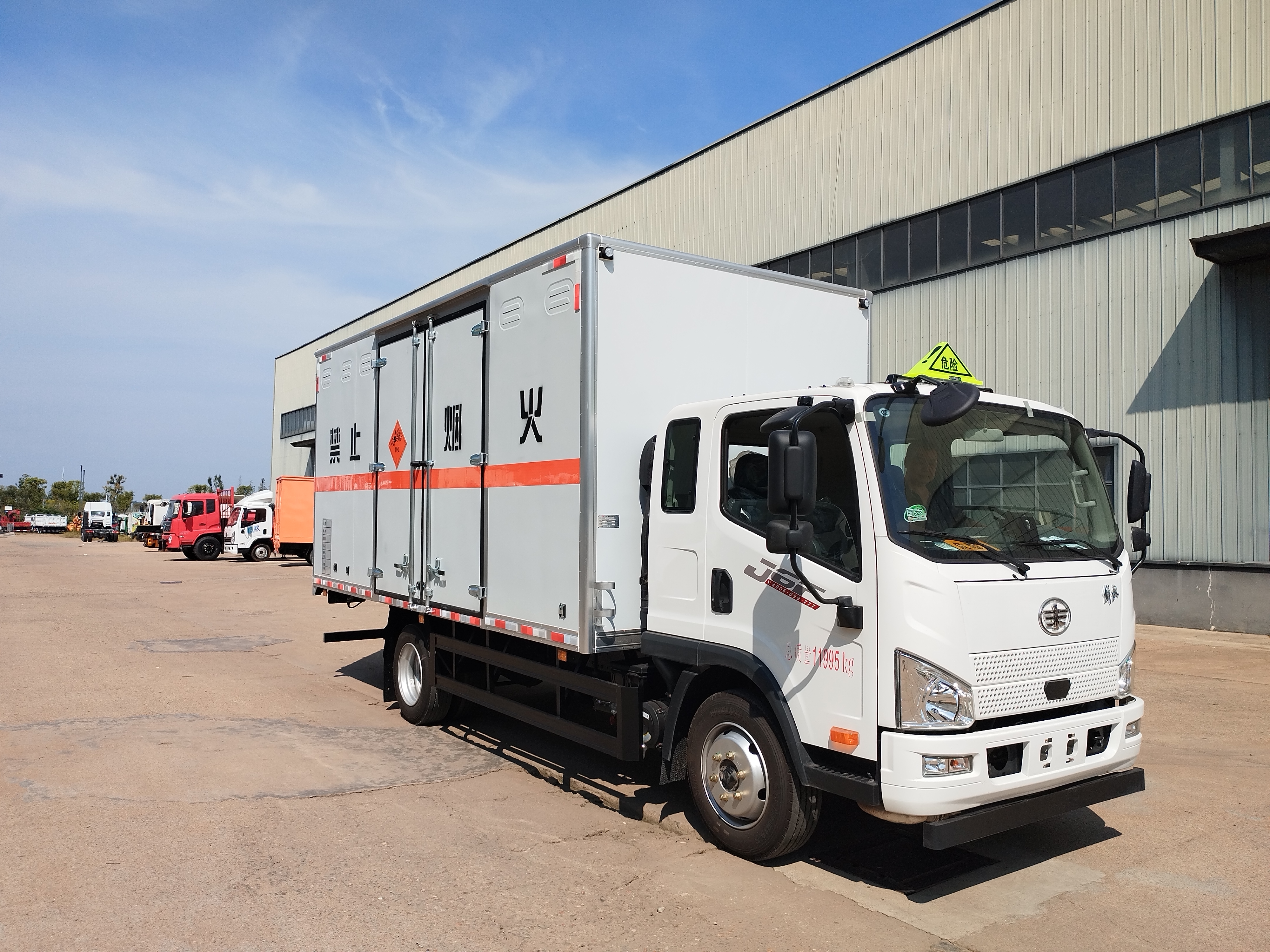 解放排半5米2國(guó)六爆破車箱體可選左右開(kāi)門(mén),額載噸位可達(dá)7噸,尾部可加裝液壓尾板,整車不超重。