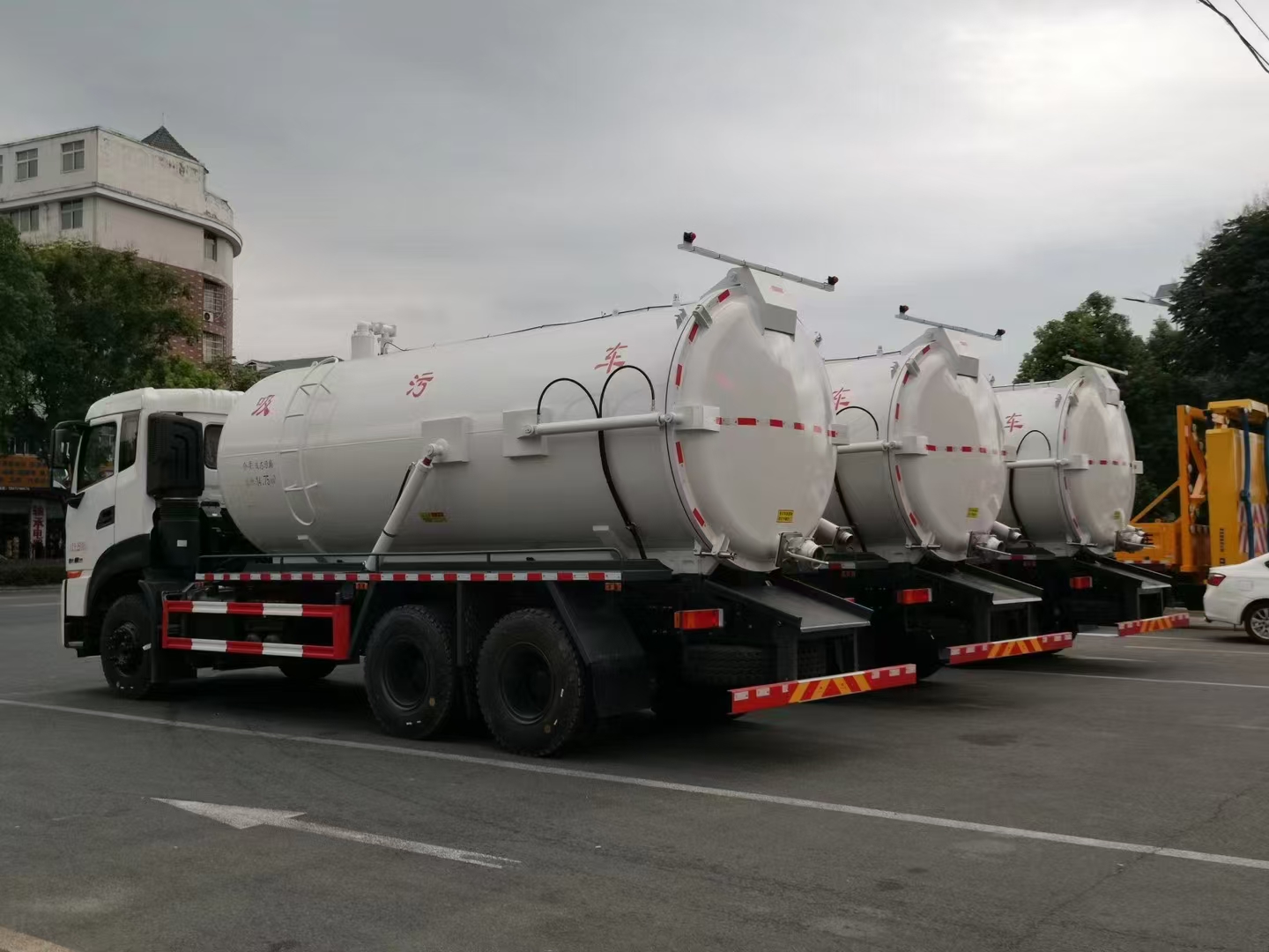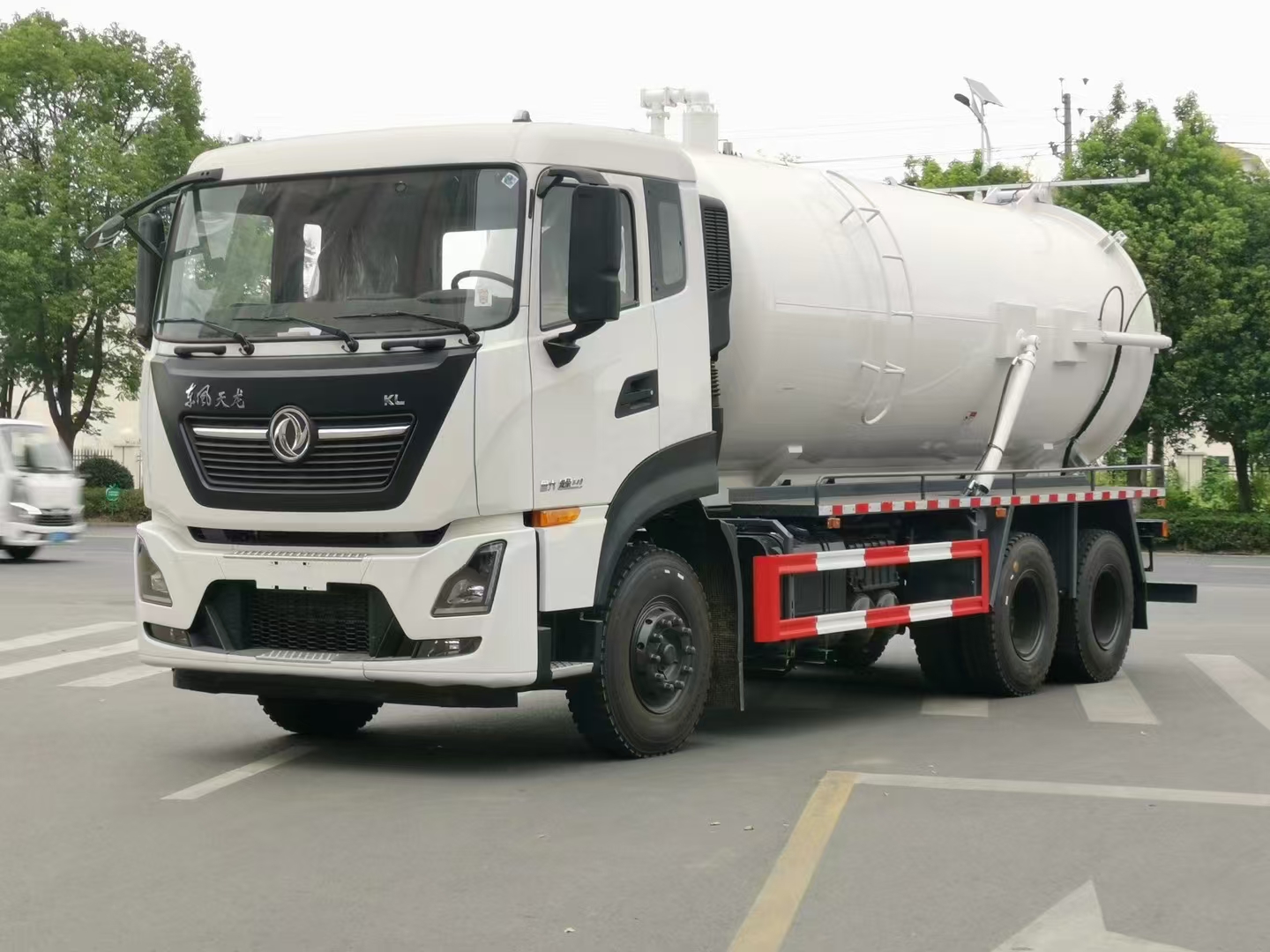 東風天龍后雙橋國六18立方吸污車采用的是白色天龍KL排半平頂駕駛室,6×4驅動,軸距4350+1350mm,四點懸浮,司機減震座椅,原廠空調,電動玻璃,中控鎖,遙控鑰匙,行駛記錄儀,龍擎340馬力發動機,法士特9檔變速箱,5.5T前橋,10T后橋,300雙層車架,11.00R20鋼絲胎,自動調整臂,斷氣剎,ABS。