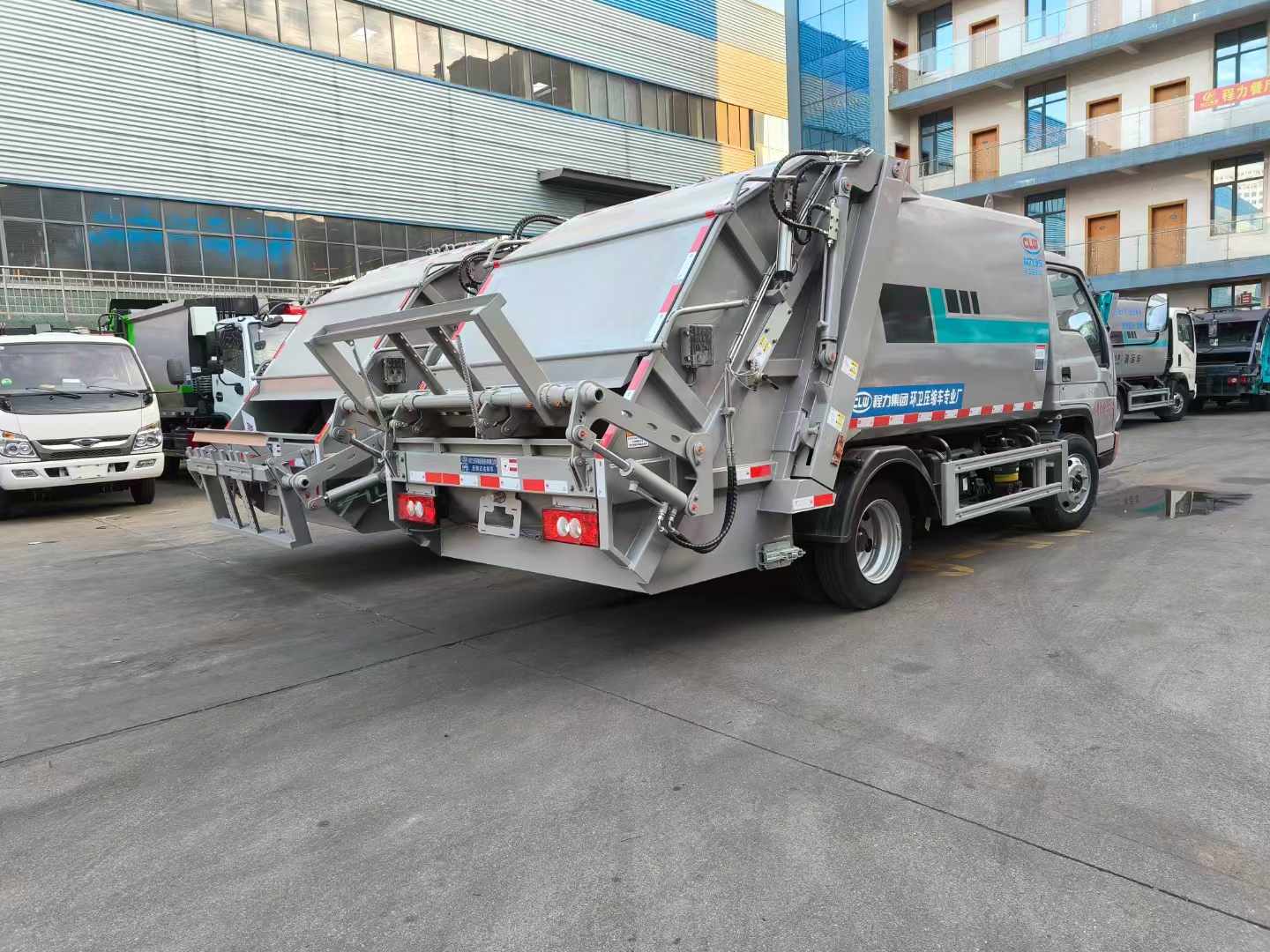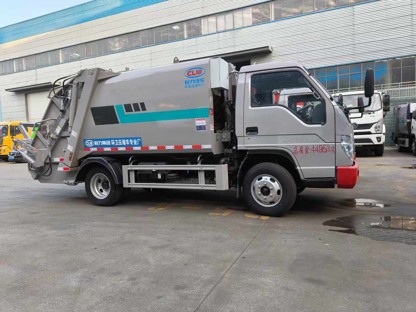 福田小卡藍牌壓縮垃圾車選用的是專用環衛底盤,全柴115馬力發動機,匹配的是中控鎖、電動門窗、原廠空調。箱體采用的是T700高強度鋼板制作,整體采用框架結構設計,簡潔美觀,有效容積大,整車結構性能突出,抗沖擊性能強,采用的是高強度弧形整體推板,受壓能力強。匹配的是品牌液壓系統,可選裝多路閥合流對應雙泵系統,在不經過節流降速的情況下做到雙泵循環速度的流量匹配,具有雙向壓縮功能,壓縮效率高、垃圾裝載量大,卸載時,填料器舉升到位后刮板、滑板自動實現一次循環,將殘留在填料器內的垃圾清除干凈。