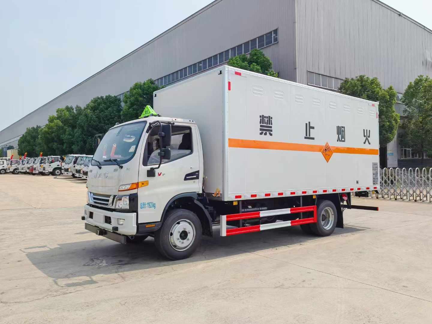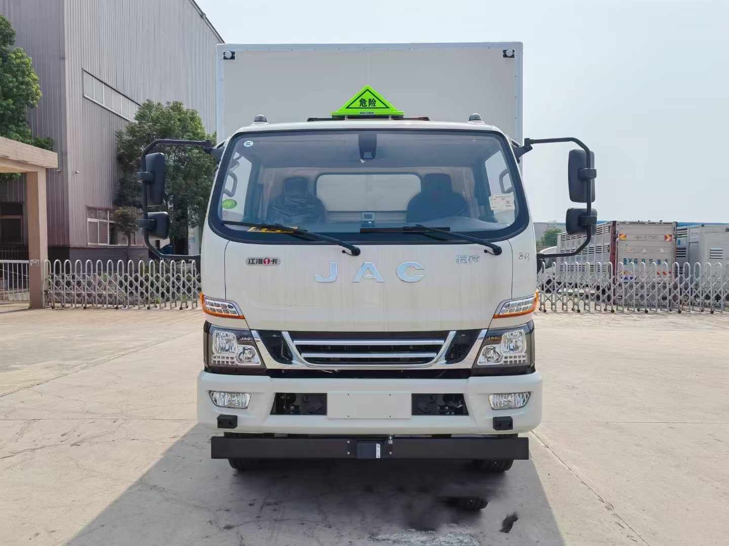 江淮駿鈴V7國六民爆車選用的是采用江淮高端駿鈴V7駕駛室,寬體3人座,3845mm軸距,康明斯發動機160馬力,可選裝云內163馬力發動機,斷氣剎,245/70R19.5輪胎,ABS,液壓方向助力,氣推離合助力,OBD接口,框架式后視鏡,多功能方向盤,收音機,可調節方向盤,大燈調節,發動機燃油預熱,多功能儀表,原廠空調,PTO,前盤,限速,ABS,行車記錄儀,防爆輪胎,剎車片報警裝置。2021新規(雙預警:車道偏離預警LDWS、前碰撞預警FCWS)根據駕駛室寬度,該車了承載3人。拉煙花民爆品等物品都需要專用的車型,箱體選用的是雙層金屬結構,箱體側面及尾部側門形式。外板采用的是靜電屏蔽冷軋鋼板,底板為花紋板上鋪靜電膠皮。尾部可選靜電拖帶。