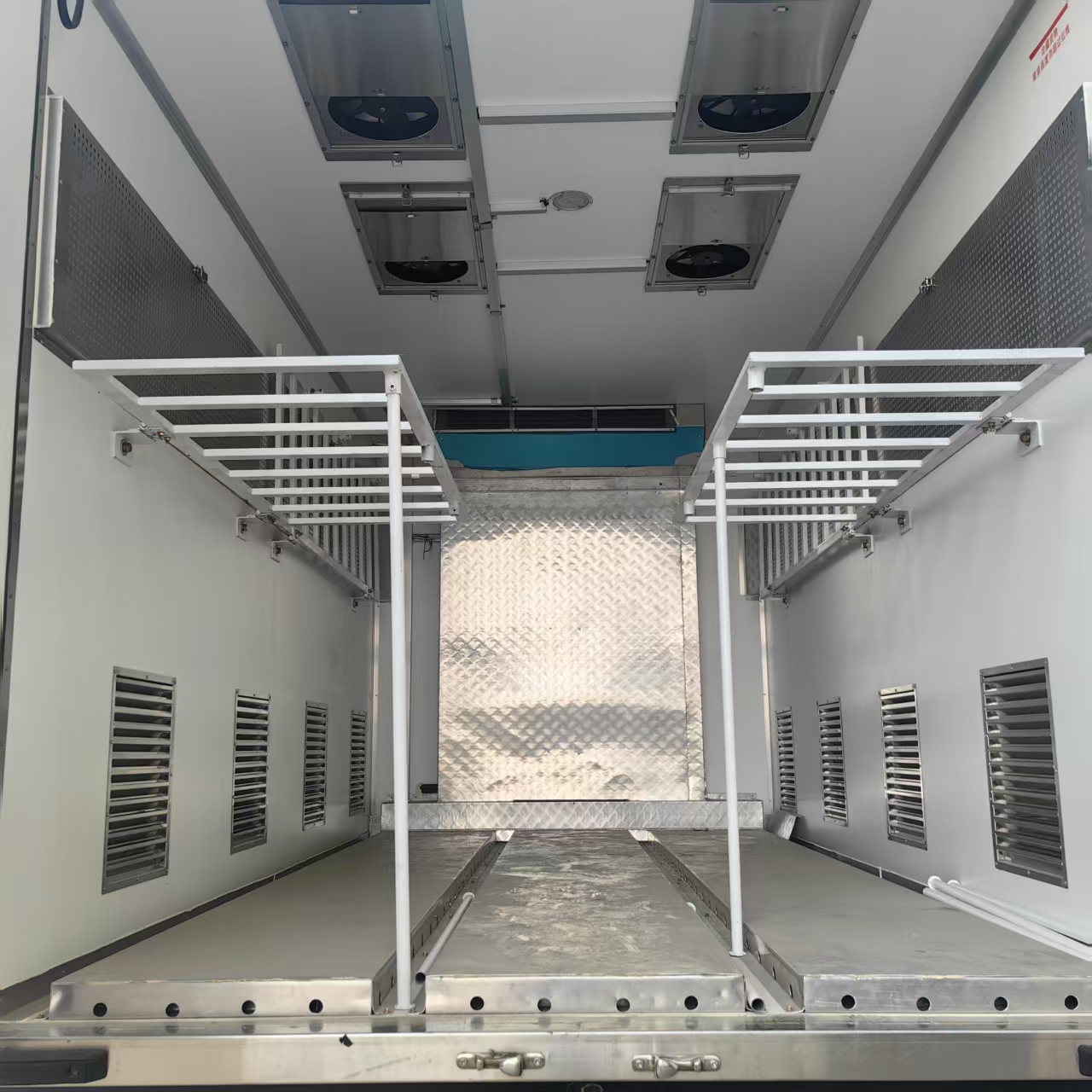 所以雛禽運輸車大部分以保溫箱體為主,箱體內部設置有加熱系統。而畜禽運輸車多數以普通倉欄貨箱為主,要求不嚴格。所以您在選擇車輛時候,不要選錯了,以免帶來不必要的麻煩。