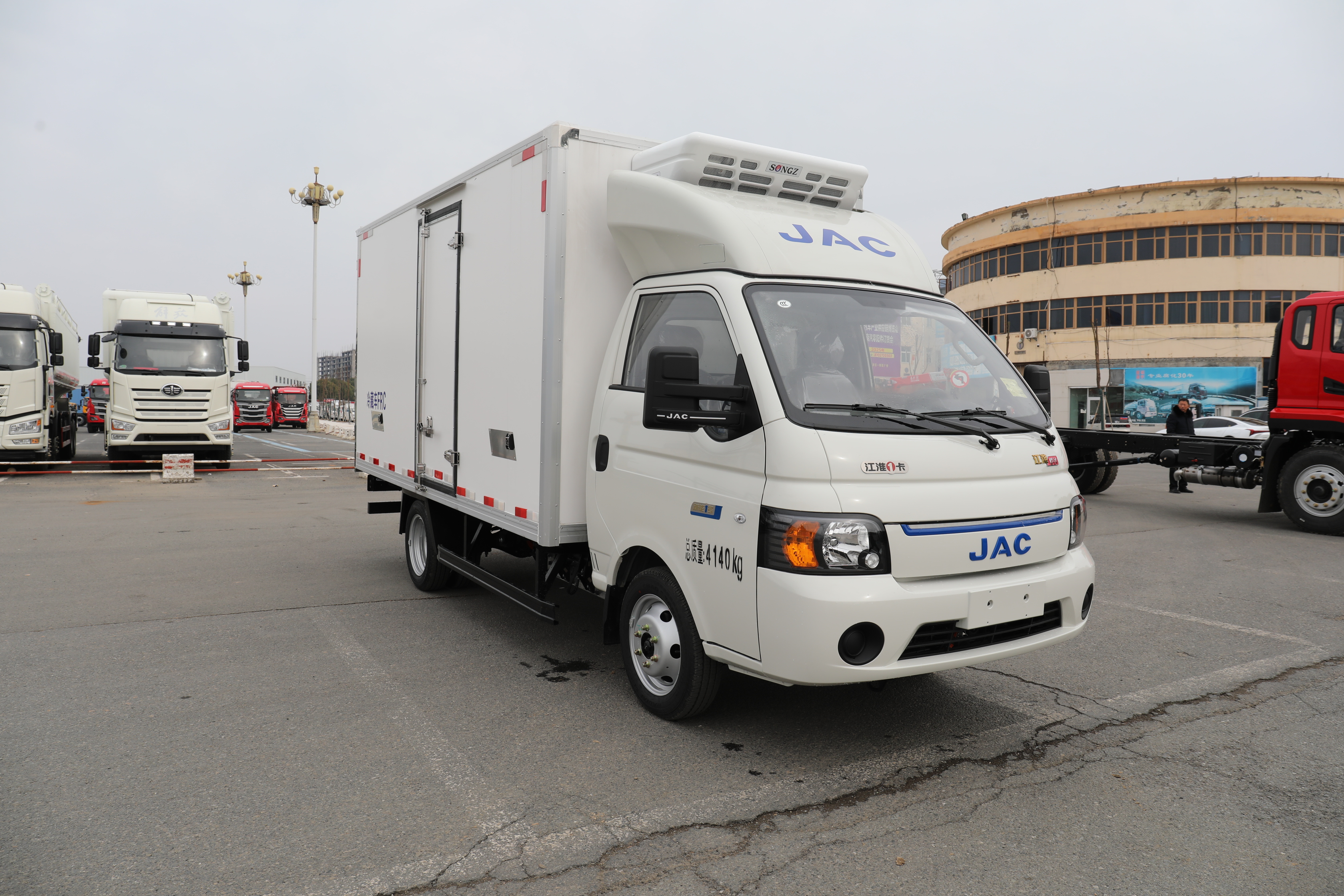 江淮愷達冷藏車為純電動能源車輛,箱體容積11.3方--13.5方,用戶可根據需求進行尺寸定制(可選3.95米、3米8、3米7等多種尺寸)。額載噸位1495kg,采用的是寧德時代電池,175/75 R16LT 8PR輪胎,63.75KWh電池容量,續航里程可達220公里。該車匹配有電子助力轉向、中控鎖、電動門窗、原廠空調,匹配有多功能方向盤,加寬電動調節后視鏡。