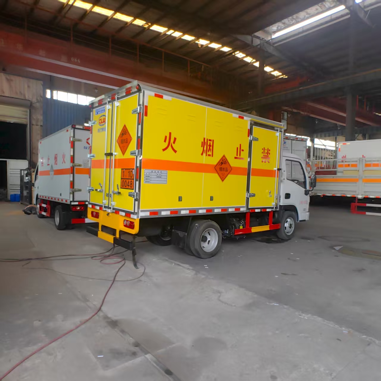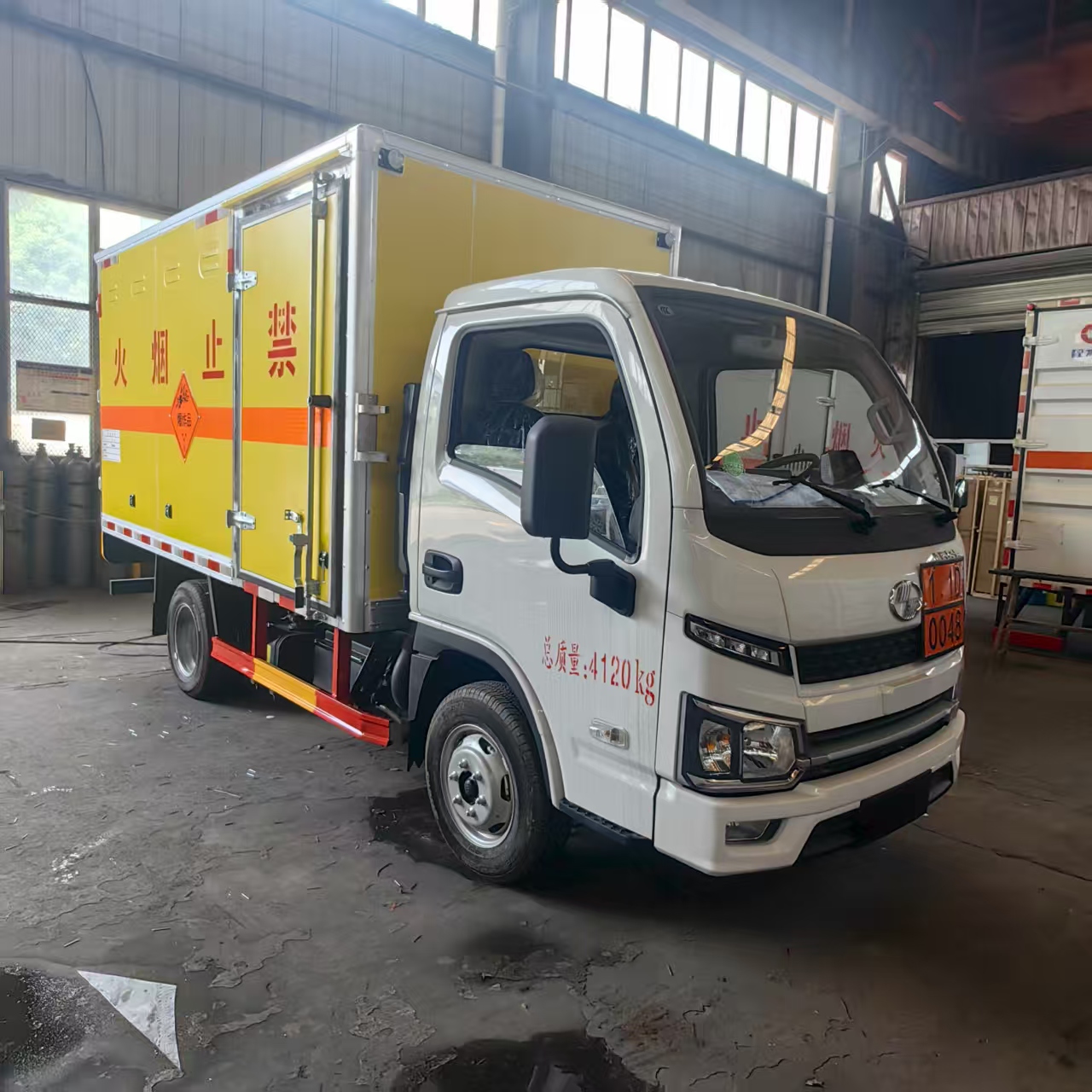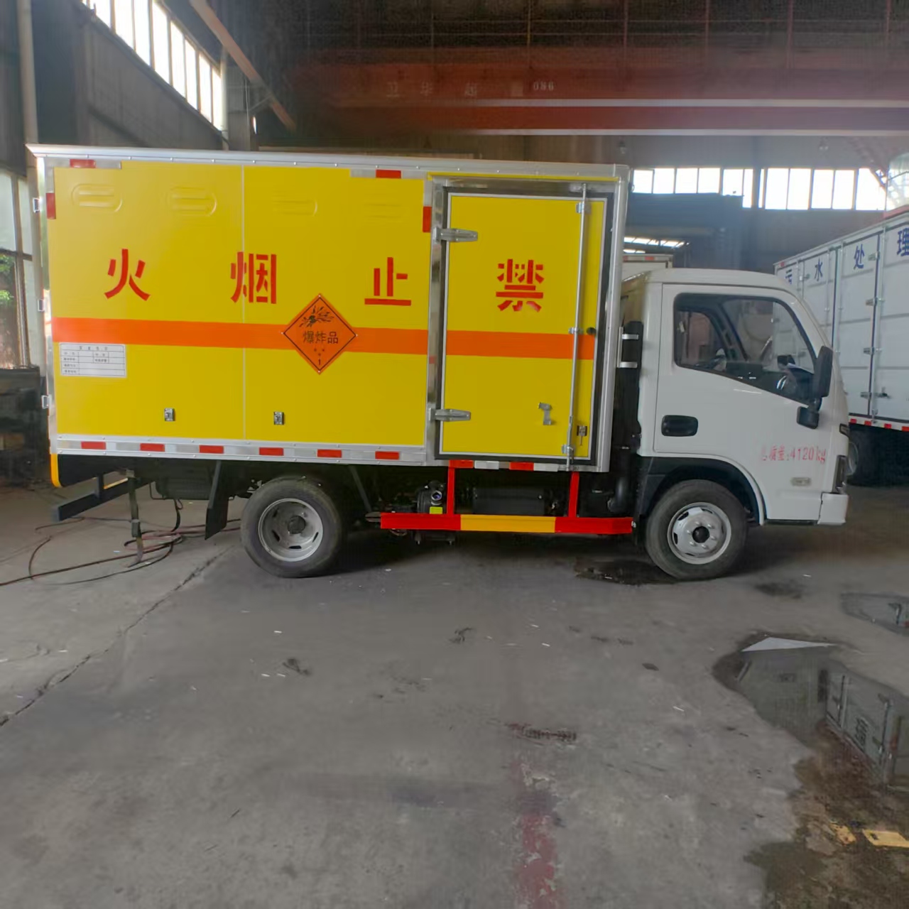 躍進S80國六帶隔倉爆破車匹配的是躍進危化品專用底盤,搭載先進柴油動力系統,輸出強勁且穩定。無論是崎嶇山路、顛簸礦區,還是城市復雜道路,都能輕松應對,高效完成運輸任務。柴油發動機具備出色的扭矩表現,爬坡、載重時動力充沛,保障運輸流程順暢,助力工程進度推進。 廂體嚴格遵循爆破器材運輸規范打造,采用防火、防盜、防靜電材料與工藝。防火性能可有效阻隔外部火源,降低安全隱患;防盜結構堅實,防止爆破物資被盜。环漓o電設計避免靜電積累引發危險,從源頭守護運輸安全。廂體表面清晰噴涂 “禁止煙火” 警示標識,時刻提醒周邊人員注意安全,強化運輸環境安全性。