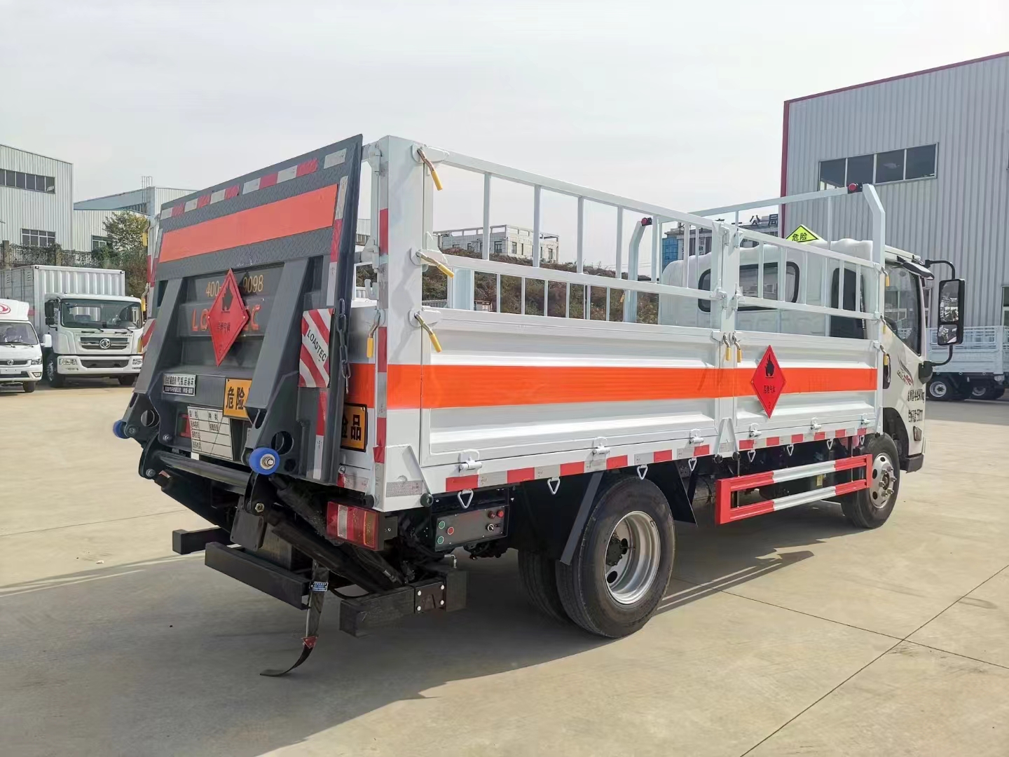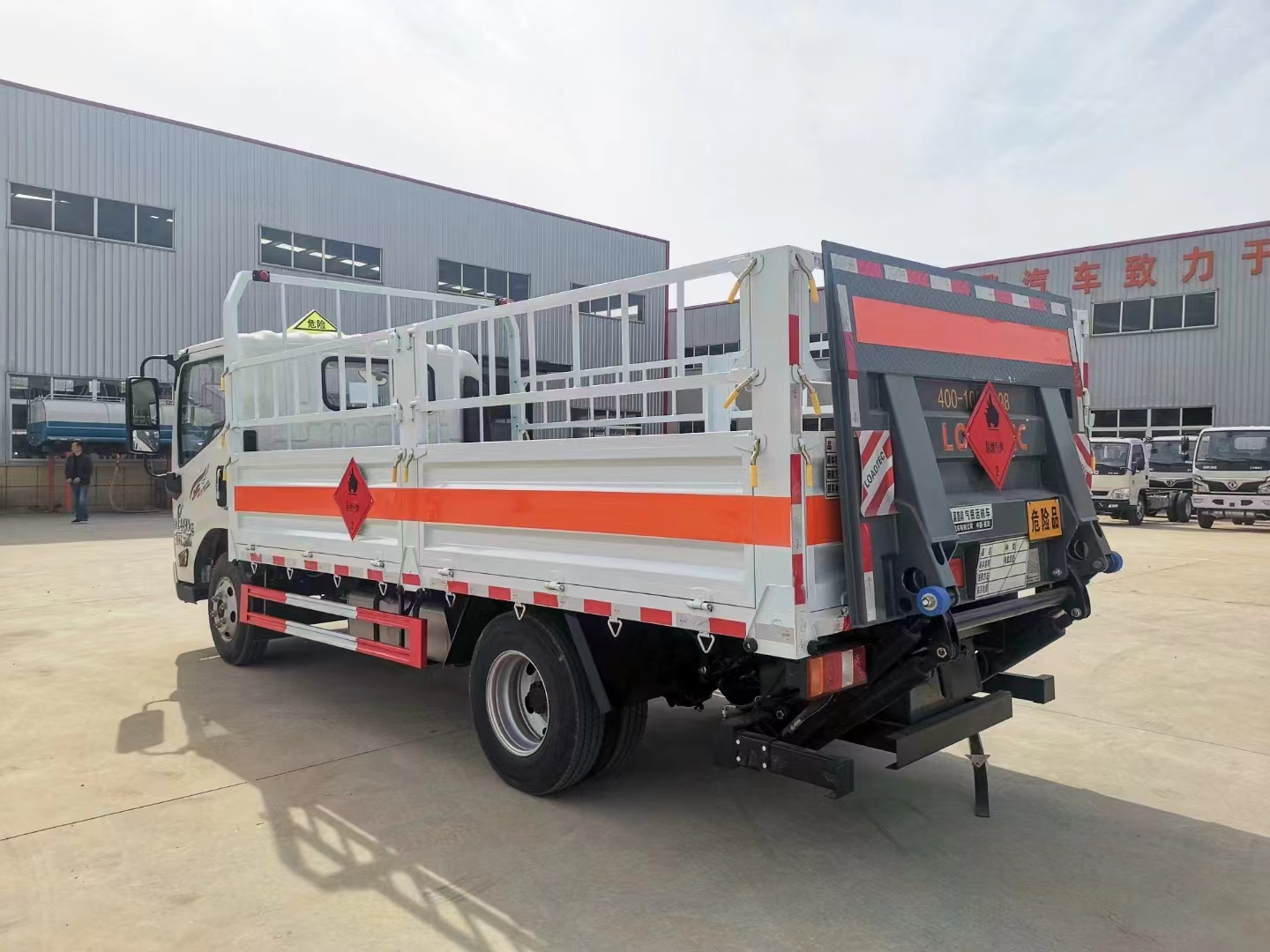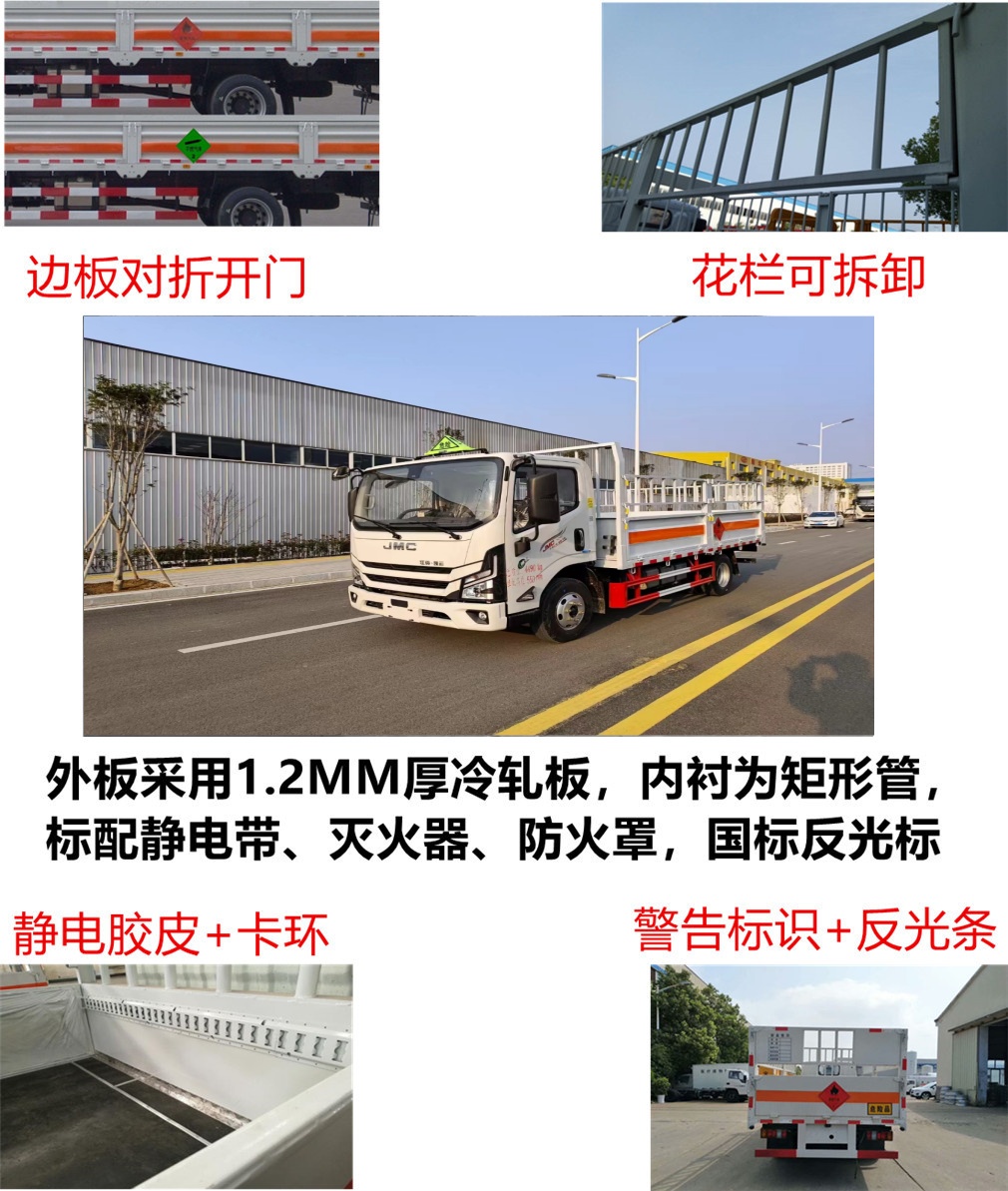 該車為危險品運輸車,運輸獨立容器(瓶)包裝的貨物;危險貨物類項號:2.1,2.2;運輸易燃氣體時掛2.1類警示牌,運輸非易燃無毒氣體時掛2.2類警示牌;僅選用3360mm軸距;發(fā)動機/油耗申報值(L/100km)對應關系為:D25TCIF1/10.69,D25TCIF5/10.66,JX4D25B6H/10.24,JX4D256H/10.51,JX493ZLQ6F/10.32;側防護材質為Q235,螺栓加焊接連接;裝有液壓尾板時后防護材質為Q235,焊接連接,斷面尺寸(寬×高):50×100(mm),離地高度:340mm;尾板收起狀態(tài)水平長度為280mm,尾板質量為350kg;選裝氣、液剎制動,氣剎ABS系統(tǒng)型號/生產企業(yè):VIE ABS-II/浙江萬安科技股份有限公司,液剎ABS系統(tǒng)型號/生產企業(yè):3550B500/浙江亞太機電股份有限公司;僅采用前輪盤式制動器,前置排氣管,子午線輪胎,靜電帶,限速裝置的底盤,限速80km/h;轉向輪安裝爆胎應急防護裝置; |