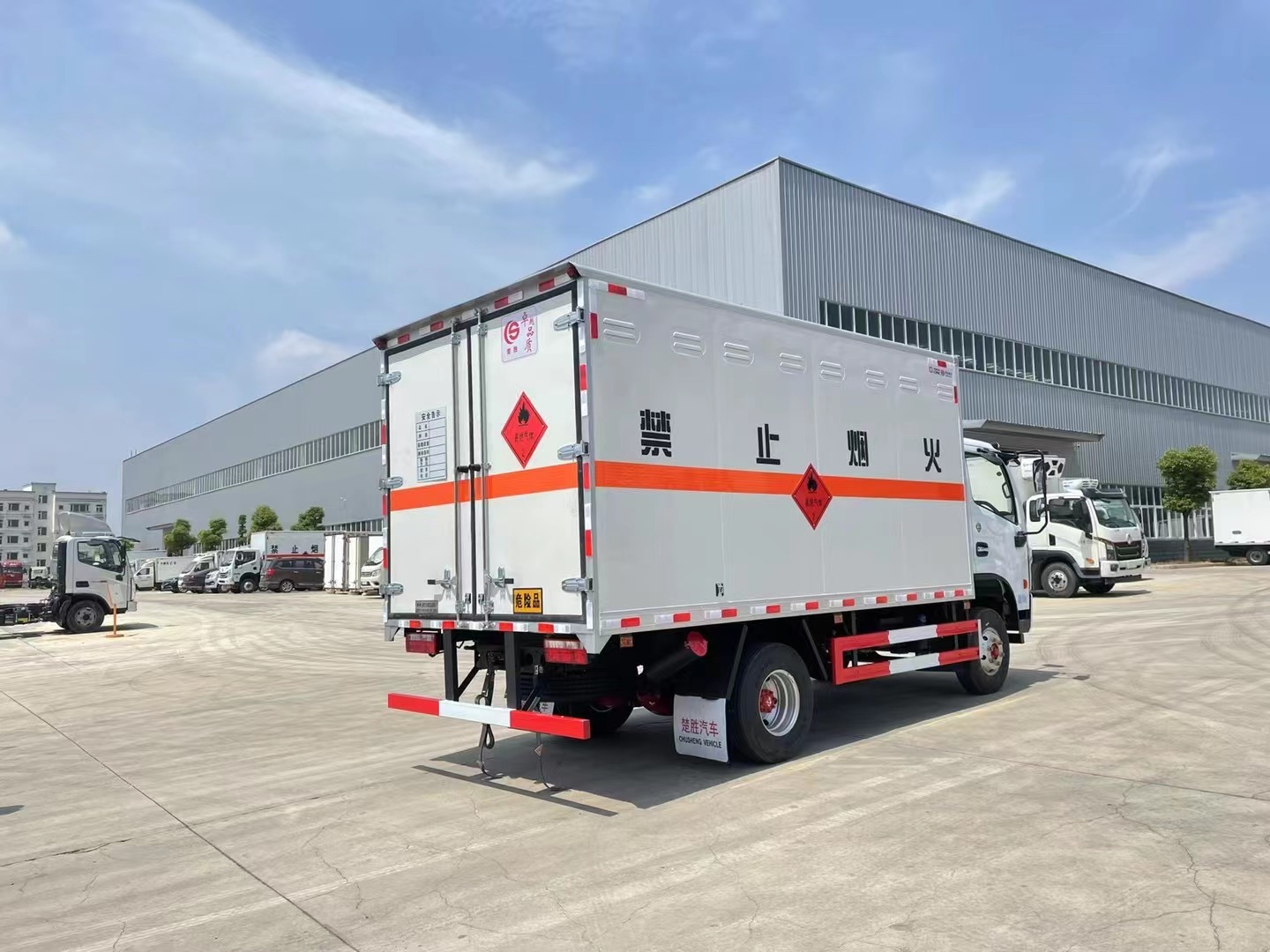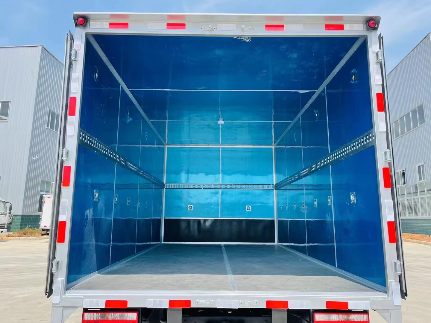 嚴格按照公告尺寸制作。外板采用烤漆板帶百葉窗,內飾為導電性能良好的鋁平板有透氣孔,矩形骨架結構內部填充防火阻燃材料,復合加鉚合工藝。廂體四周鋁合金包邊及包角,車廂底板3mm鋪設防靜電膠皮,廂體前臉50公分高鋪設防靜電膠皮。后部設置對開門,右側單開門,廂體內部兩側安裝捆綁貨物的臥環。廂體內部安裝煙霧報**器及防盜報**感應器。車廂一周粘貼橙色反光帶,箱體粘貼 菱形標志牌,安全告示牌,危險品牌,箱體安裝示廓燈(前白后紅),拖地靜電帶。