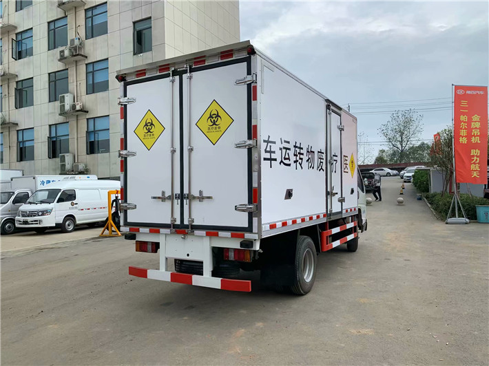 江鈴國六醫(yī)療廢物轉(zhuǎn)運車,箱體配置:箱體采用外玻璃鋼內(nèi)不銹鋼材質(zhì)制成,5cm保溫板,箱體內(nèi)無死角,加裝噴霧消毒,紫外線滅菌燈,尾部為雙層密封門,防滲漏,污水收集箱,加裝-5度制冷機組。
