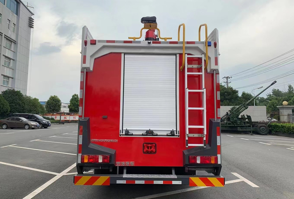 重汽豪沃后雙橋國(guó)六水罐、泡沫消防車(chē)采用框架焊接,罐體內(nèi)設(shè)置縱、橫防蕩板,以減少車(chē)輛行駛過(guò)程 中罐內(nèi)水對(duì)罐體的沖擊;罐體前后壁板折有梯形折筋,使罐體具有足夠的強(qiáng)度、 剛度。罐頂設(shè)快速開(kāi)啟式人孔,方便維修人員進(jìn)出。罐內(nèi)設(shè)有防止水泵吸水形成旋 渦從而影響流量的裝置和濾網(wǎng)。罐內(nèi)設(shè)有不銹鋼浮球式液位指示器,可通過(guò)儀表板上液位表顯示罐內(nèi)滅火劑 的容量;罐底設(shè)有帶球閥的排污口。罐體設(shè)有 2 個(gè) 76mm 溢流管,車(chē)廂兩邊各 2 個(gè) 76mm 注入口,便于其他車(chē)輛供 水加液之用。